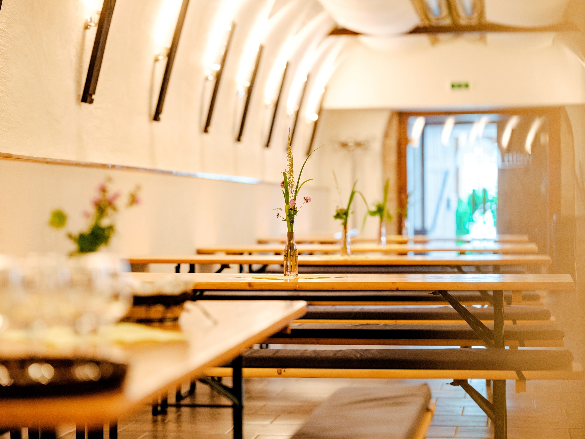 The wine tavern wein.keller.sporr, located in the idyllic Schindergasse, is a place that combines tradition and innovation. In a cozy atmosphere, visitors can enjoy a delicious snack and taste excellent wines from various Weinviertel winegrowers. The wine tavern also offers the opportunity to organize a guided tour of the cellar alley in the 'crazy village' of Herrnbaumgarten. This unique place is a must for all wine lovers and offers an unforgettable experience amidst the picturesque landscape of the Weinviertel.