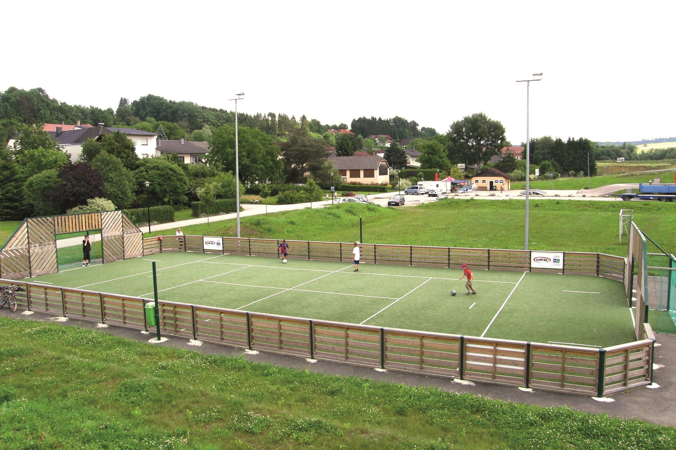 In the warmer months of the year, the Donauwellenpark invites young and old to take a trip to Ardagger Markt. A beach volleyball court, a giant swing, a fun court, a children's playground with a toddler area, a spacious skate park with a "pool" and "fun box", a climbing wall, a bike course and some smaller play equipment round off the offer.