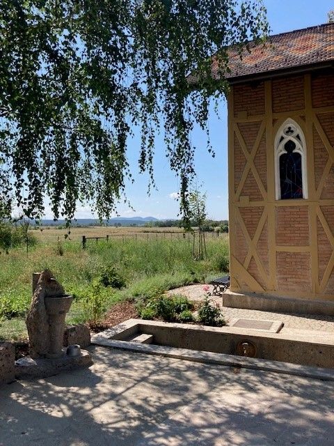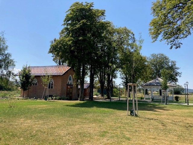 The outdoor facilities around the Healing Fountain have been redesigned. According to a planting concept, there will be plenty of greenery around the chapel in the future. In future, access will be through a gate so that visitors can consciously enter the area. A pavilion has been erected to the right of the chapel. New seating will be created and a new, modern toilet facility will be built.
