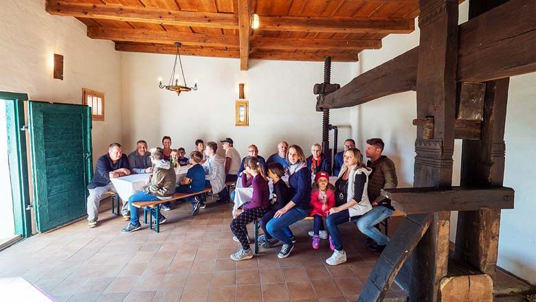 The Großkadolzer Kellertrift comprises around 200 cellars and press houses. The feel-good cellar is also located directly on the exciting cycling and hiking routes such as: TAR, Poltweg, Iron Curtain, KTM and many more in the region and has been lovingly rebuilt and partially redesigned. A few years ago, the building was transferred from a private individual to the market town of Seefeld-Kadolz. Today, the cellar has spacious seating that invites you to linger and an automatic oven that provides cozy warmth even in winter. The special grape varieties and other plants in the educational show vineyard behind the press house have been selected so that they can cope well with the growing climatic extremes. A snack garden has also been created in collaboration with local schools. Opposite is the Euregio Vinothek with around 125 wines from the region. Information material about the region is available.