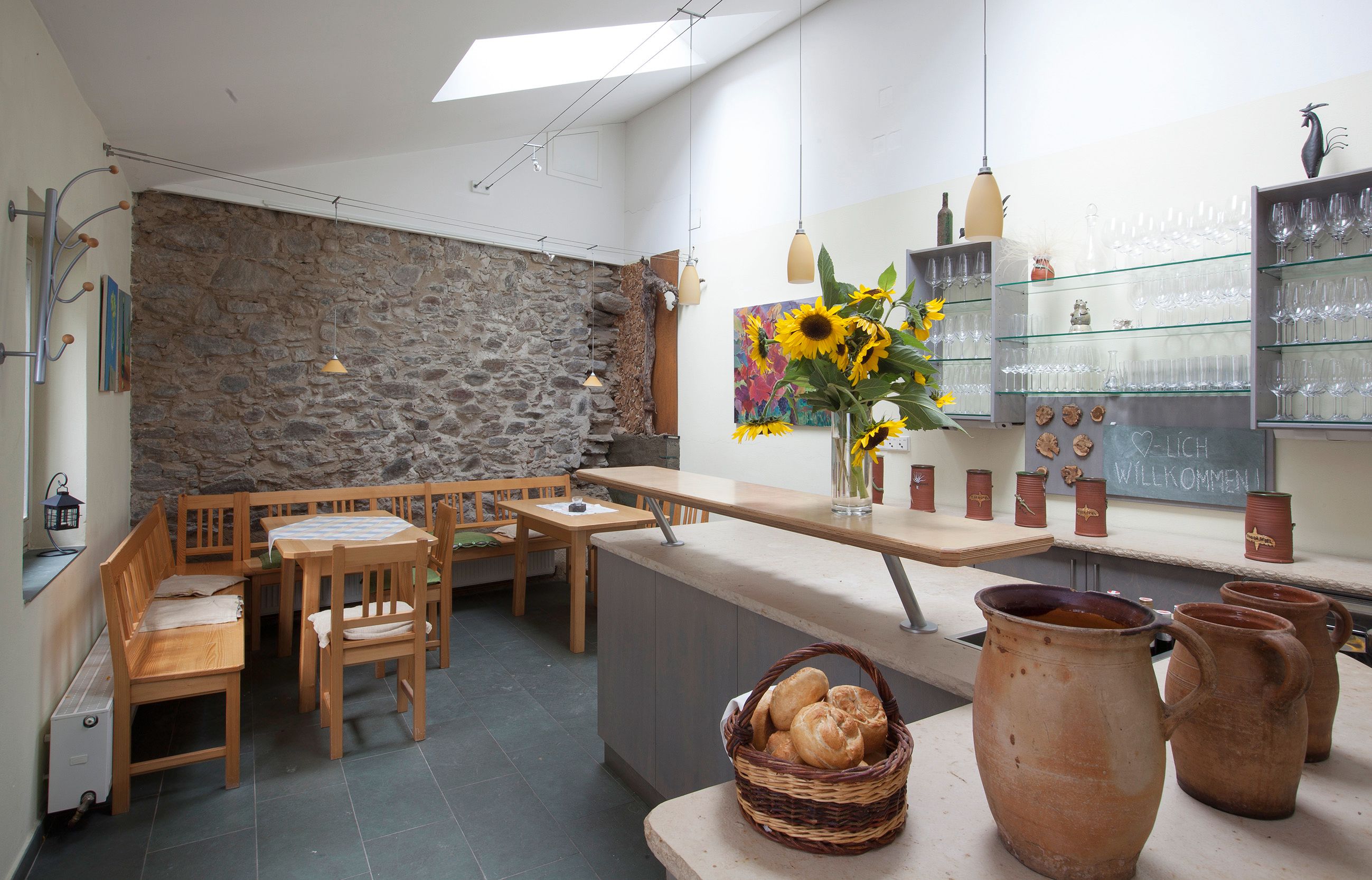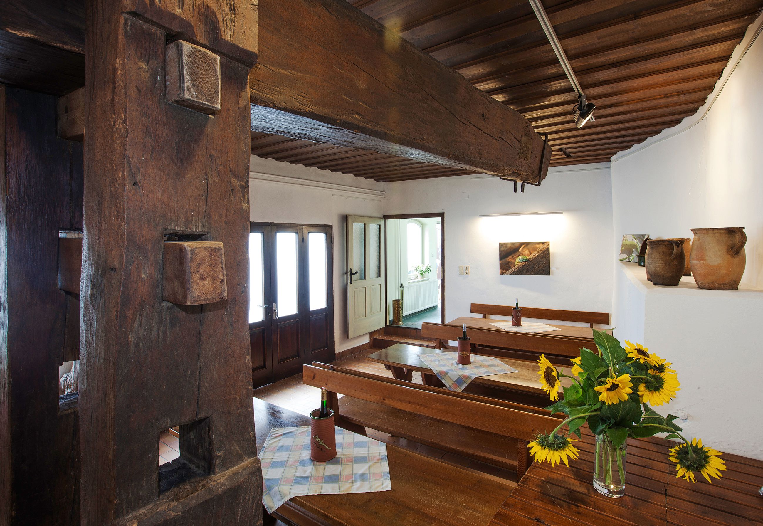 The wine tavern serves traditional delicacies and regional specialties to accompany our wines. In the garden you can also enjoy the wonderful view over the Weißenkirchen vineyards. If the weather doesn't play along, there is also a Heurigen restaurant, which has been created from the old press house with the original preserved tree press.