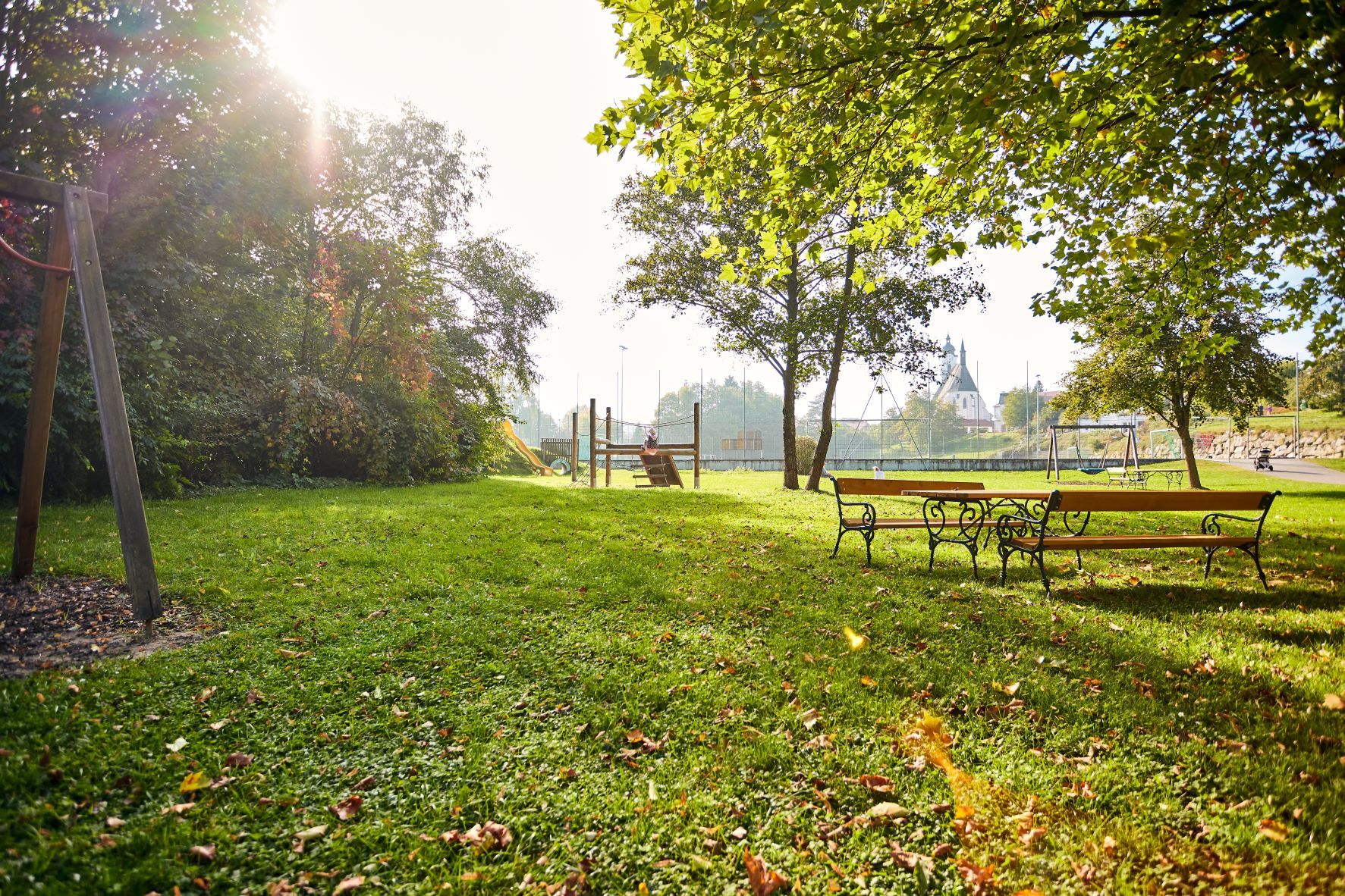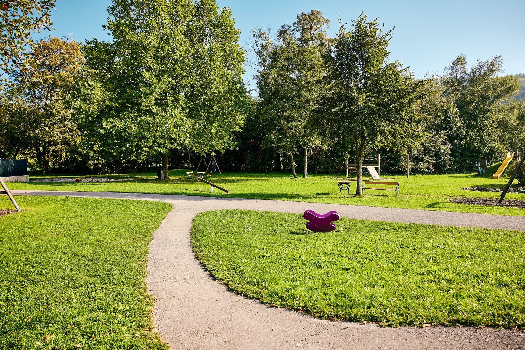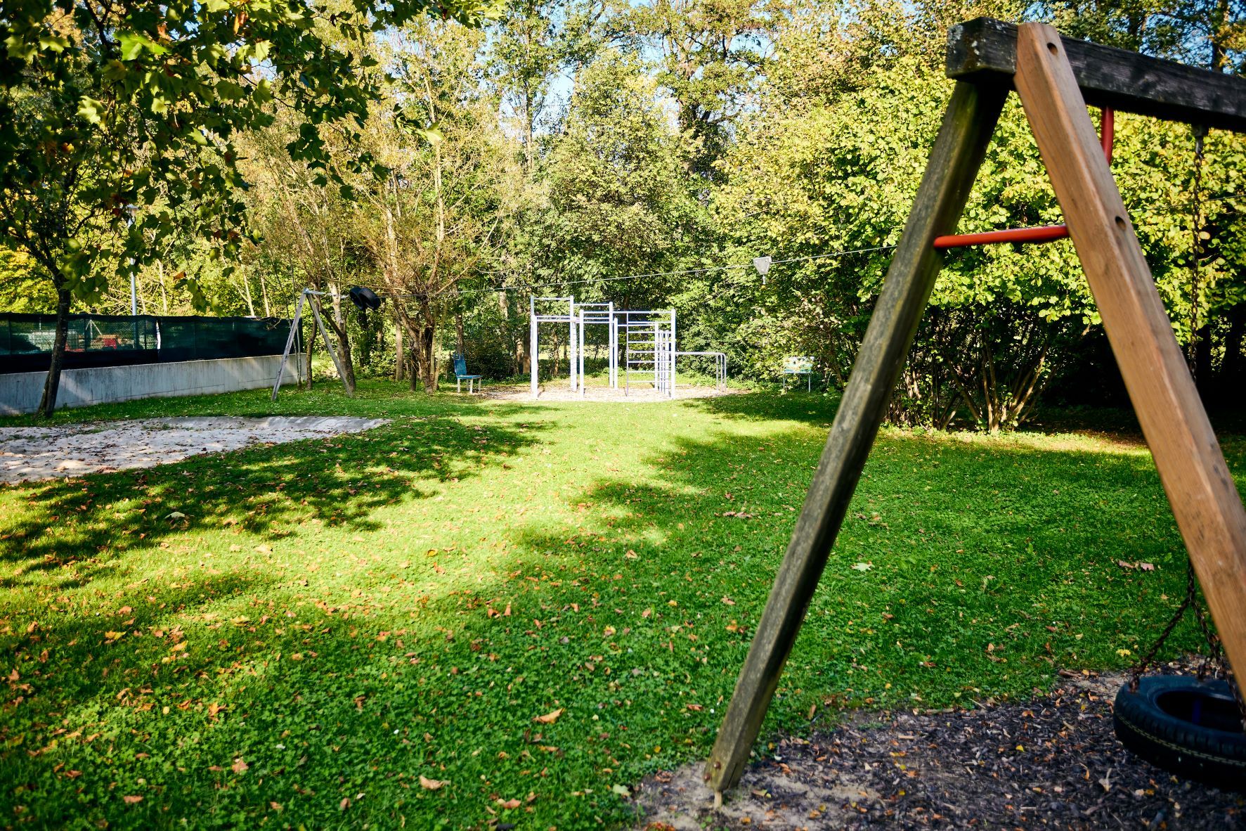 The playground near the artificial turf pitch is freely accessible at all times, accessible by car/bicycle and on foot, parking spaces are available on Rauscherweg