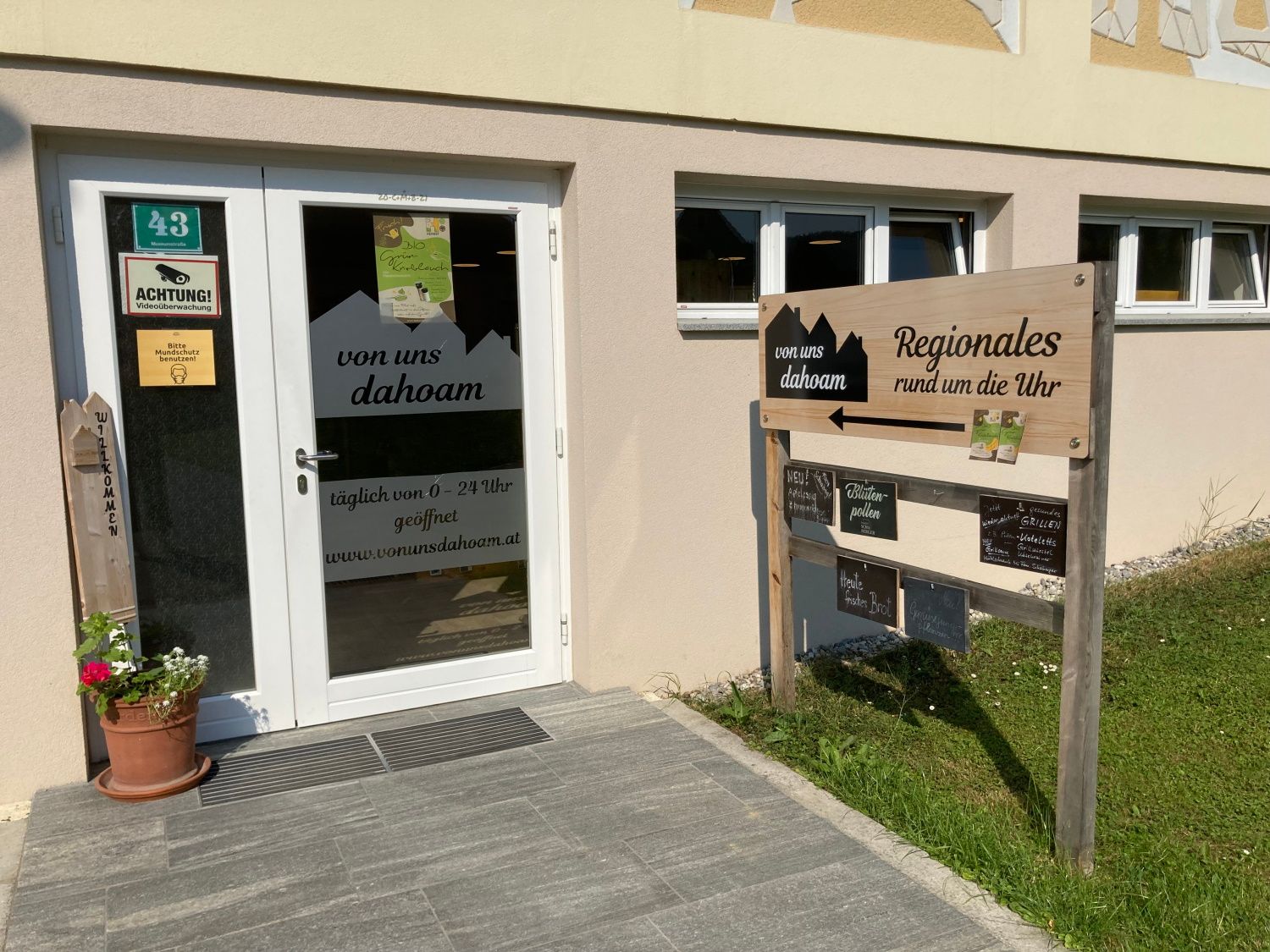The regional store "Von uns dahoam" in Hafnerbach, which opened in 2018, is housed in the elementary school and is open daily from midnight to midnight. The cozy self-service store offers products from 15 regional producers. The range extends from woodwork to body care products and top-quality food.