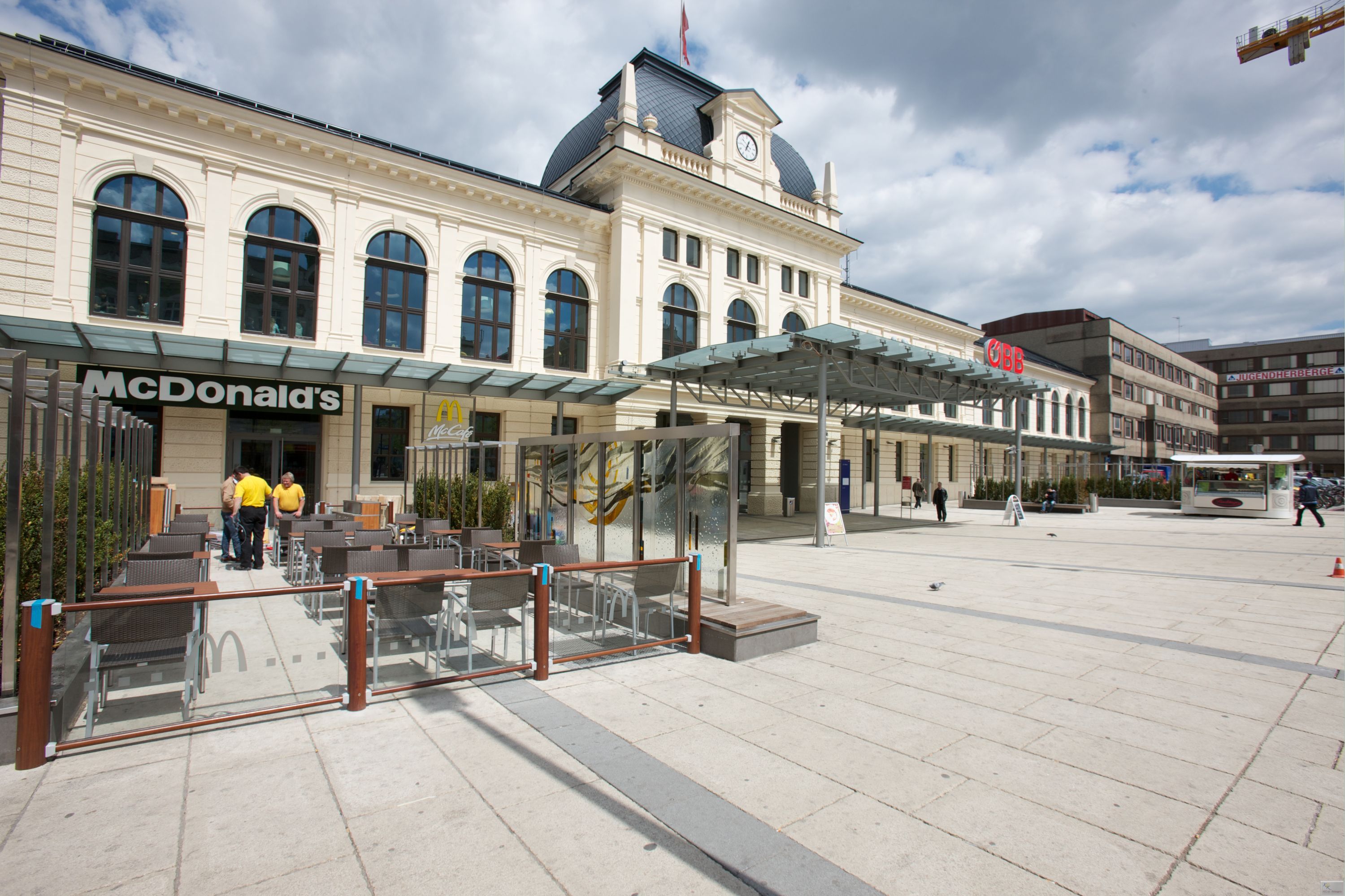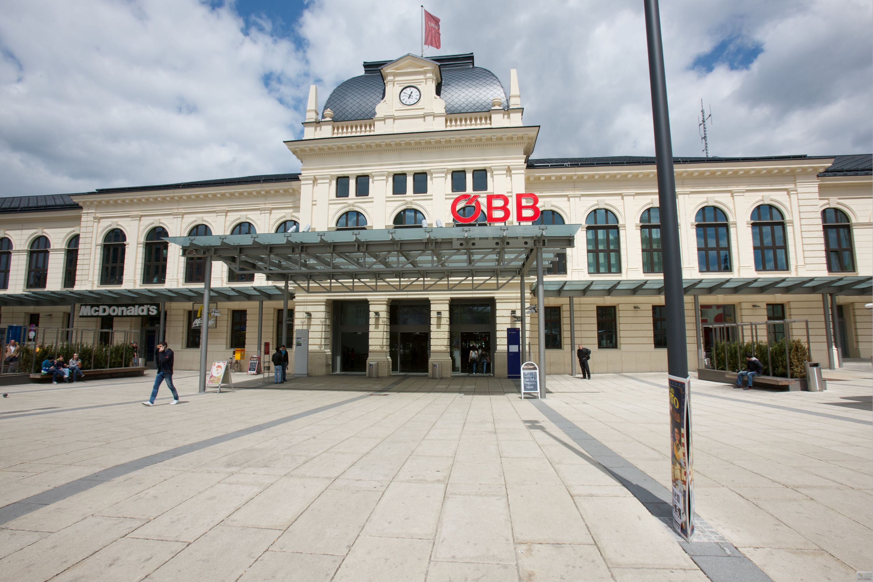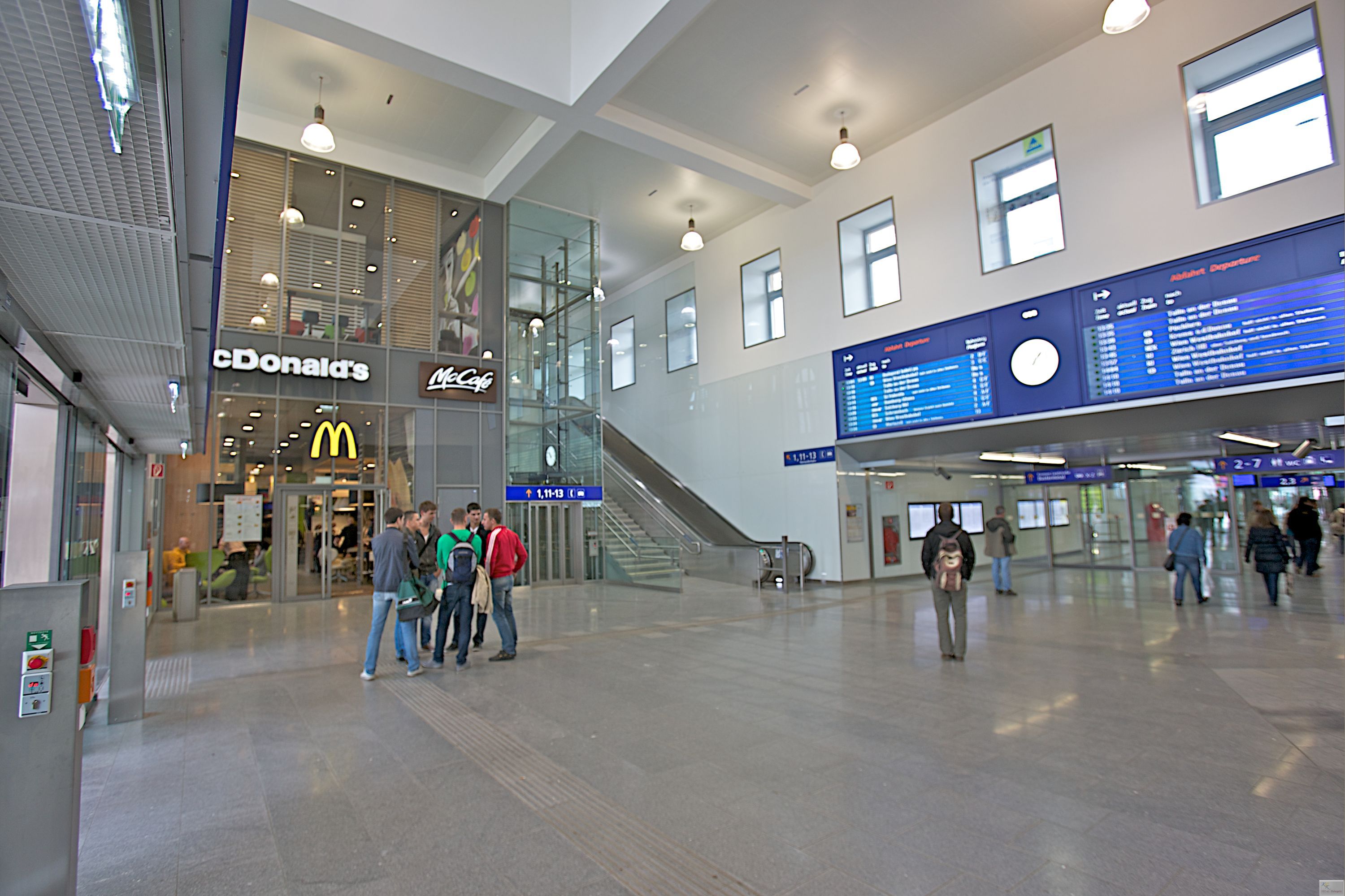 Today, a light-flooded hall with ticket machines and information center, convenient shopping facilities as well as escalators and lifts characterize St. Pölten's main station.