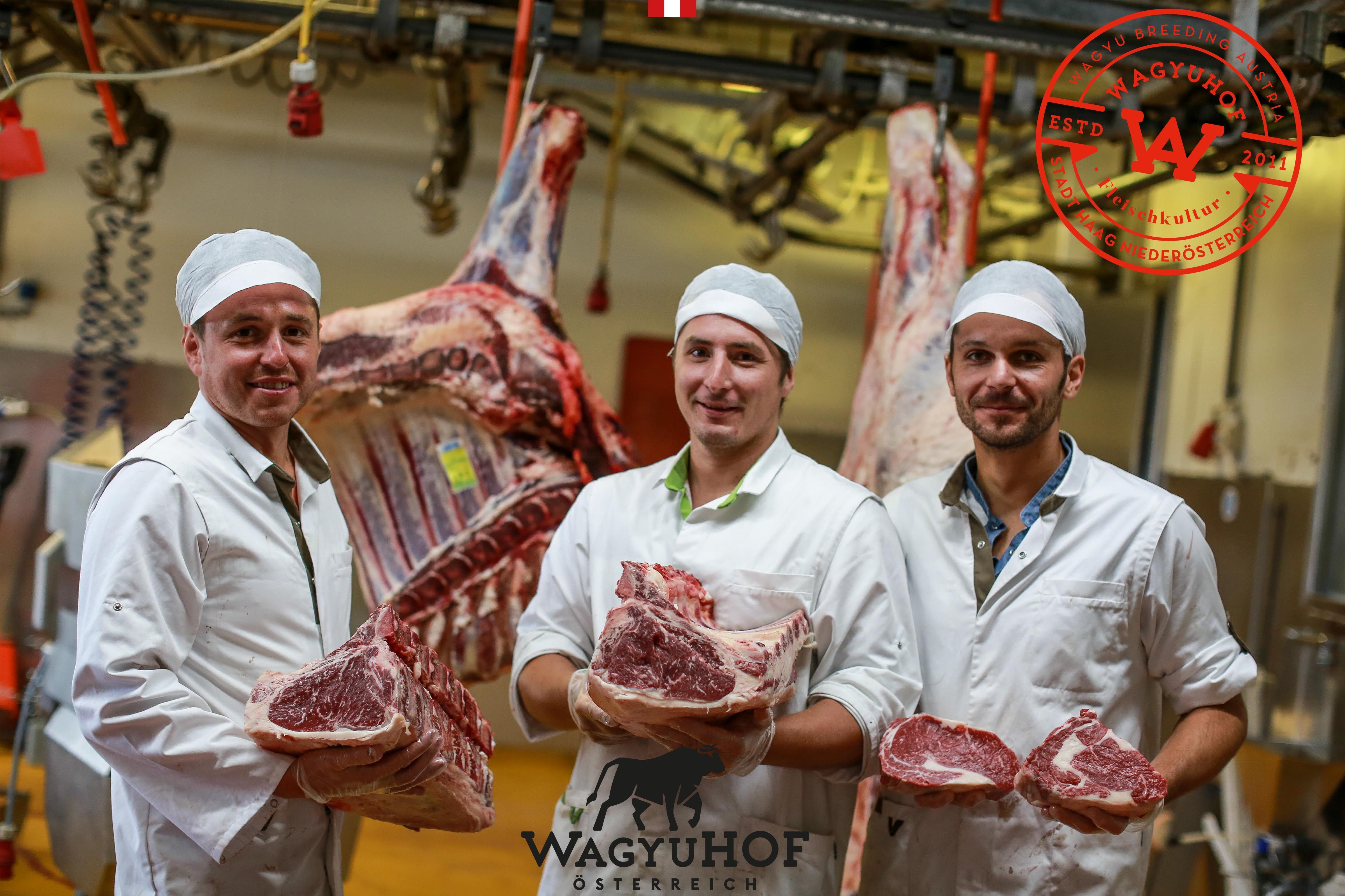 After several very intensive years of development, Florian Irxenmayr, Patrick Fehringer and Karl Peterseil decided to breed and process Wagyu cattle in the Mostviertel region. They now offer the best beef on the farm and in the online store. The animals grow up on their farm, isolated from any stress factors on the pasture. Up to the age of 14 months, the Wagyus feed exclusively on the grasses and herbs that nature provides them with.
