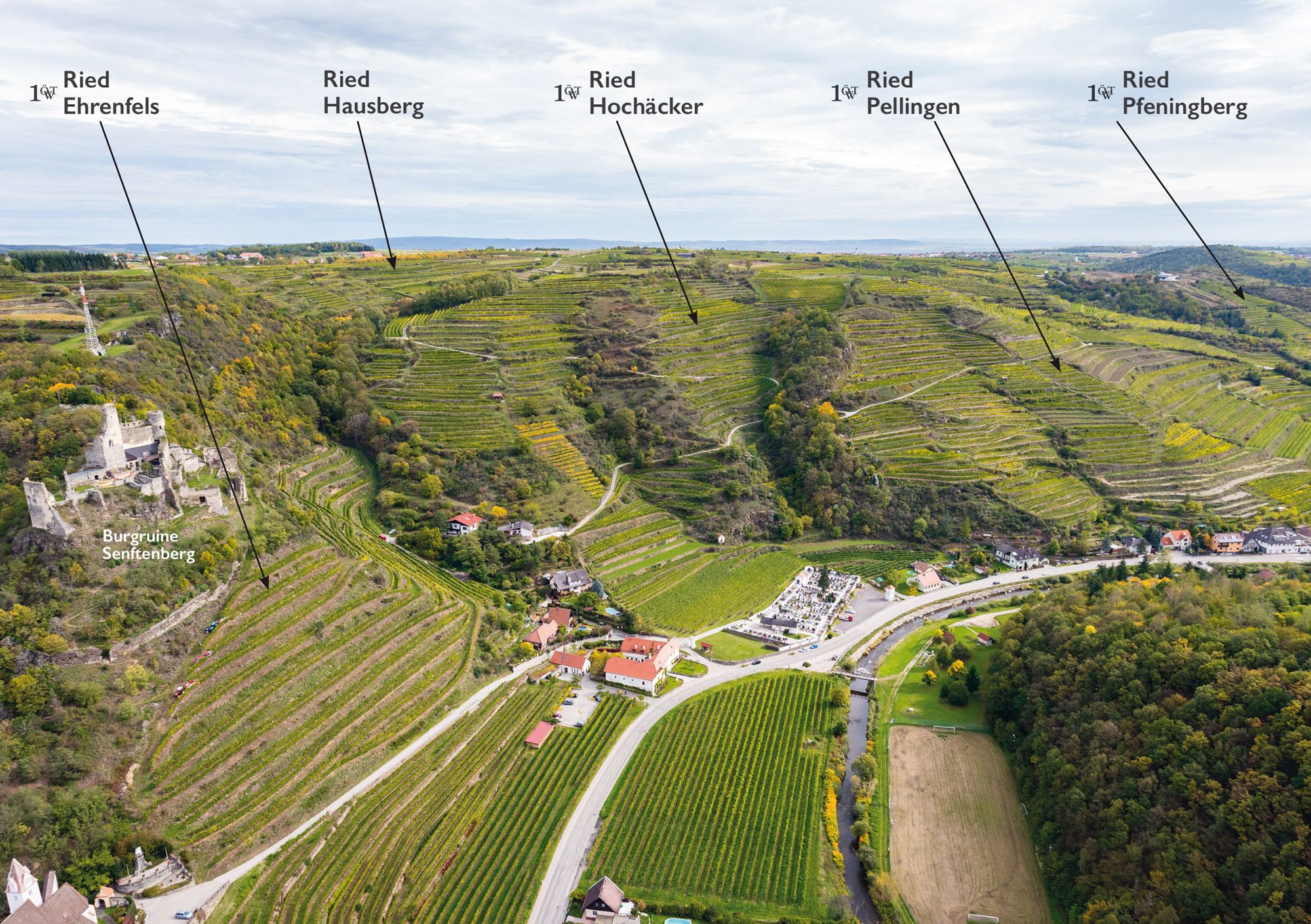 Our farm is located at the beginning of the Krems Valley ("Kremstal" in German) wine-growing region. It combines the winegrowing region of the Wachau with the typical Waldviertel landscape of deeply incised river valleys, structured by forest and rock. The combination of the cool air currents of the Bohemian Massif and the mild temperatures of the Danube region, together with the Gneiss weathered soils, creates ideal conditions for wines with a distinctive character.