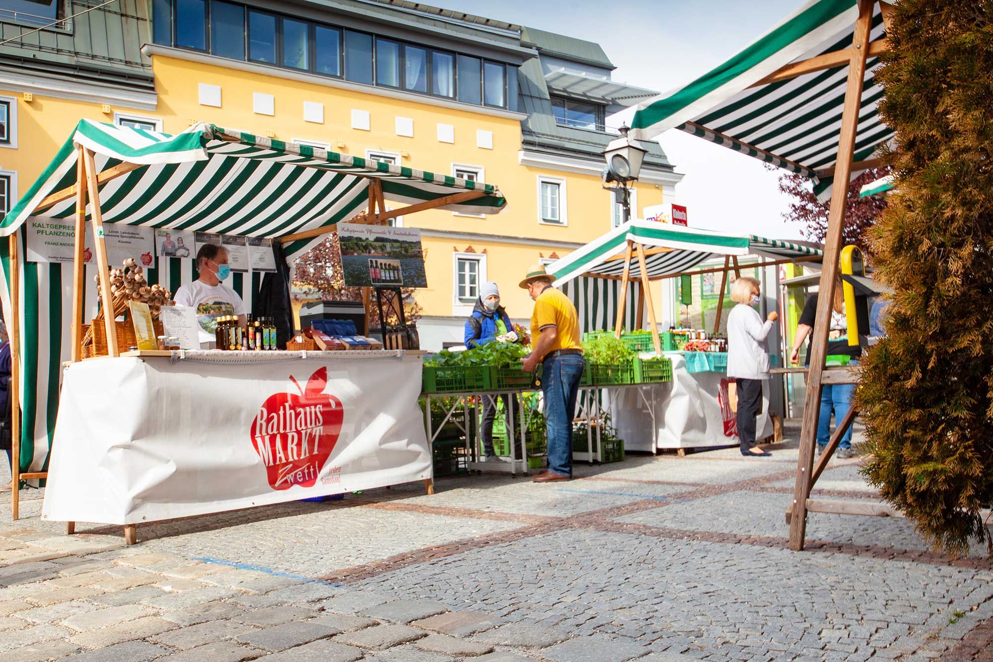 Every Saturday morning, you can buy regional products directly from the producer in the city center of Zwettl with warm friendliness and magical market flair. The products on offer range from fragrant organic bread, crunchy seasonal fruit and vegetables, delicious wholemeal pastries and Waldviertel potatoes to fresh eggs, regional honey, fine cream cheeses, smoked fish, sausage and meat specialties, cold-pressed vegetable oils, fine brandies made from wild fruits, herbs, young plants and individually made handicrafts.
