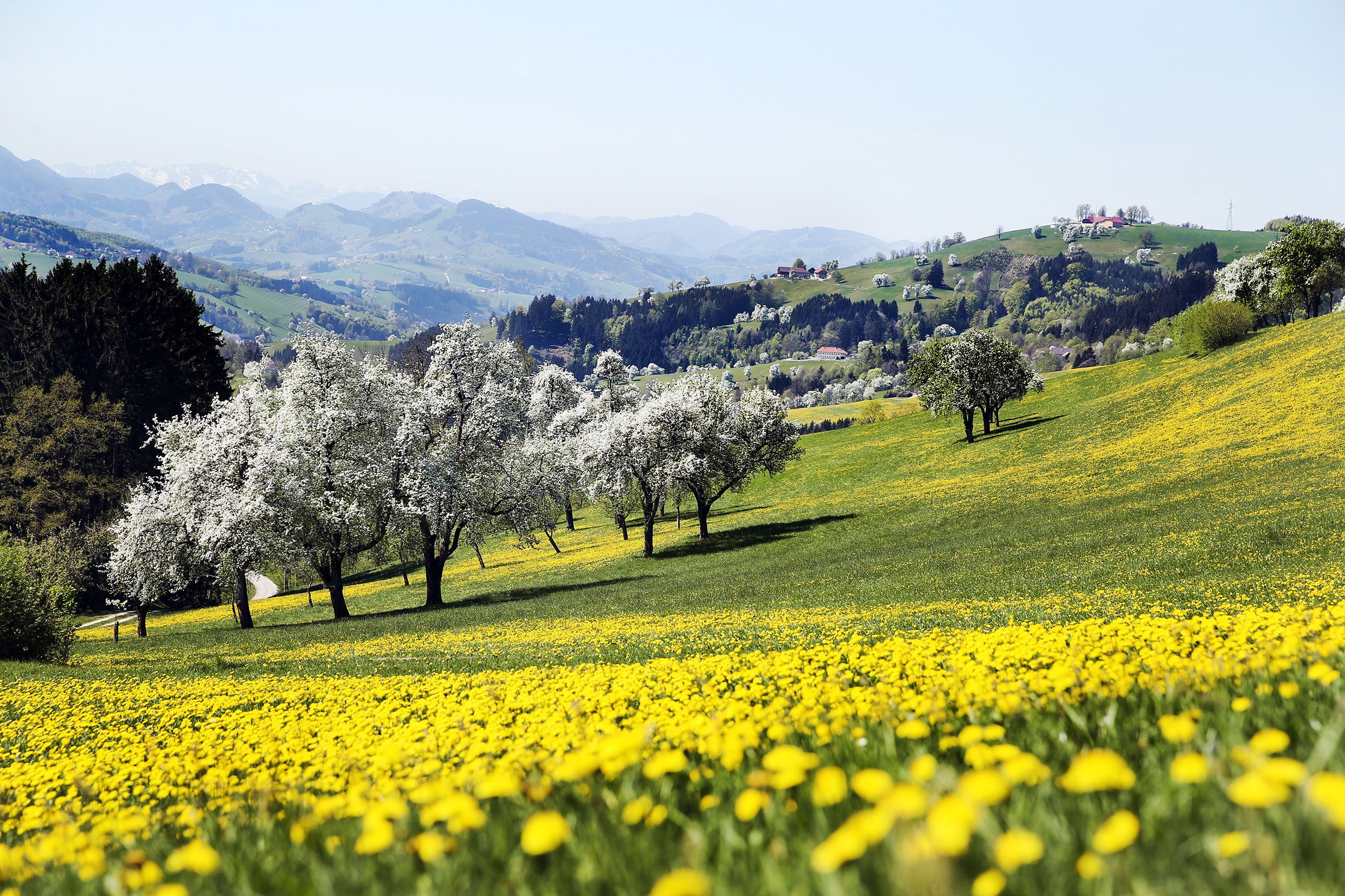 The basilica belongs to Seitenstetten Abbey and is still a popular destination for pilgrims today. 60 percent of the land in Sonntagberg is used for agriculture. The farmers primarily focus on grassland farming with dairy cows. The landscape is also characterized by a large number of fruit trees. They are in full bloom every spring. Later in the year, the farmers transform the rich harvest into excellent ciders and brandies. Iron has shaped the development of the village for centuries. A document from the year 993, which refers to the former seat of power Gleiß, indicates the mining of iron ore on Sonntagberg.