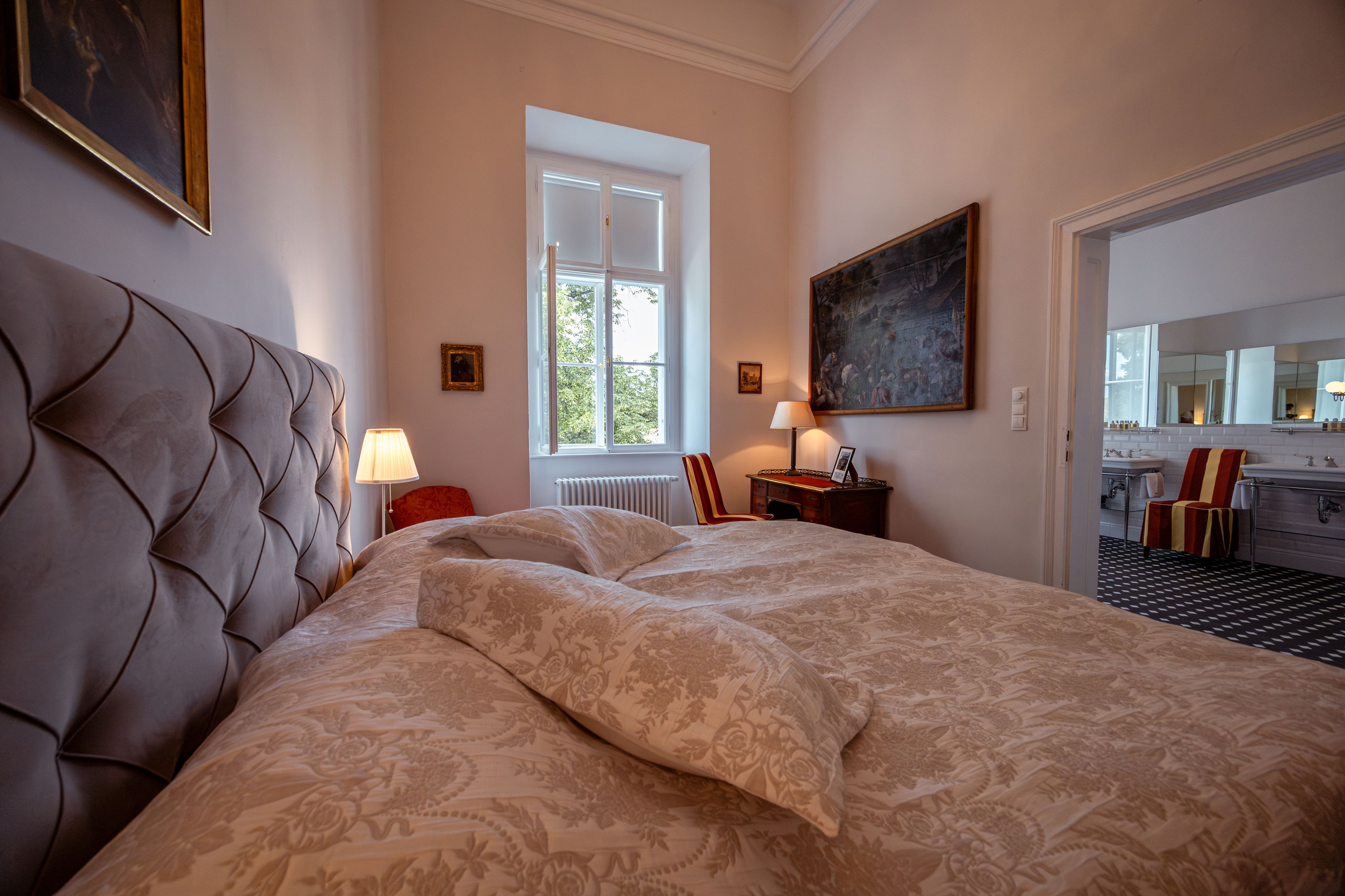 In the middle of a beautiful park, directly in Horn, the Count Hoyos family owns a castle, the oldest parts of which date back to the 12th century. Four luxurious suites with spacious living areas and fully equipped kitchens are available to guests in the newly renovated wing. A day's vacation there could look something like this: After a restful night in a box-spring bed, enjoy a sumptuous breakfast - with organic products from our own production, such as eggs from the castle park hens and homemade apple juice - and then stroll through the 23-hectare castle park.stroll through the 23-hectare castle park, take a break, play a game of tennis, jump into the outdoor pool, retreat to the private chambers, eat well and end the day in peace.