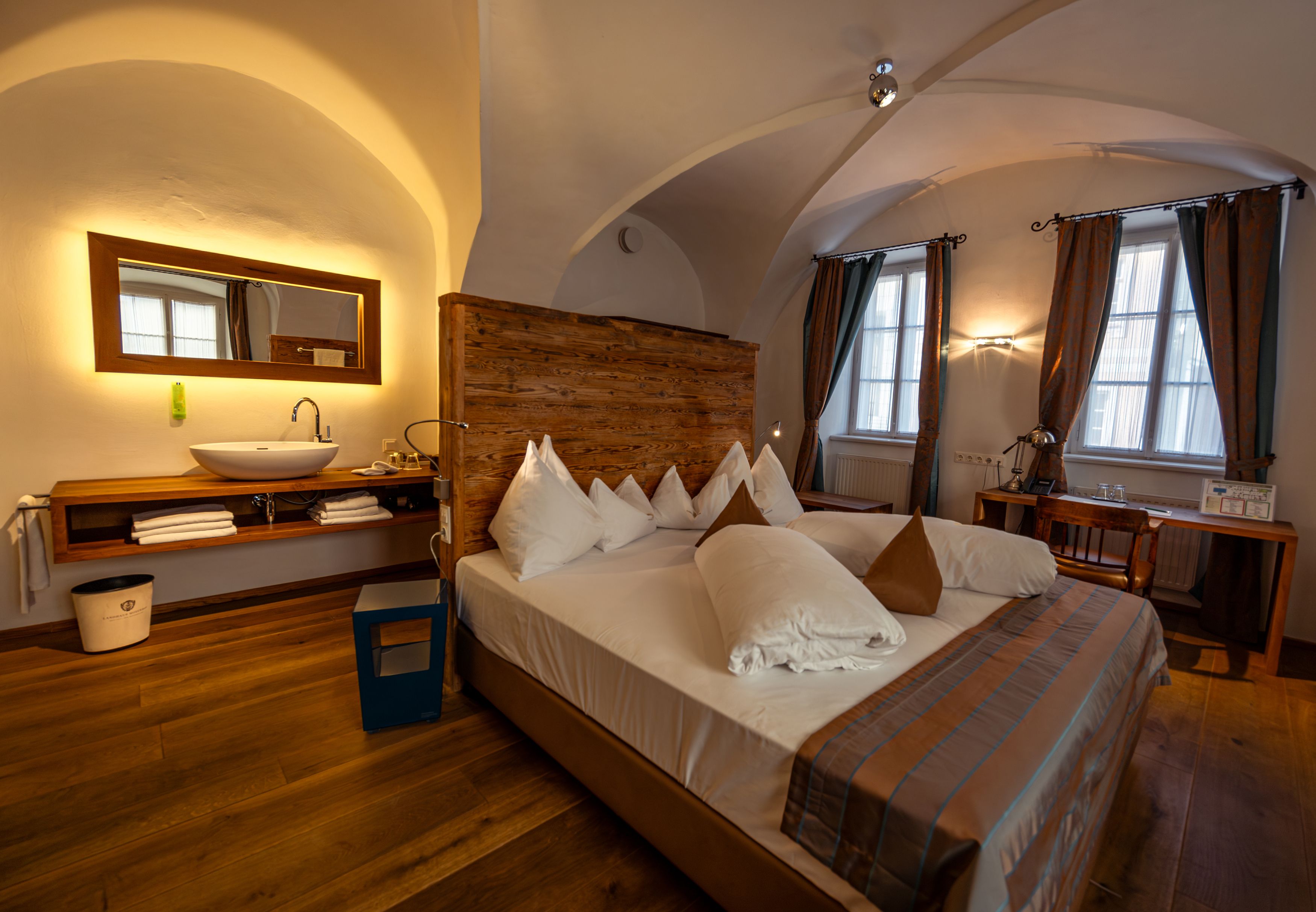 Located in the historic center of Gumpoldskirchen, the manor house has lost none of its charm since 1437, but has gained some amenities. Renaissance and stucco elements, vaulted ceilings and antique pieces are combined with selected contemporary designer furniture. A small wellness area with sauna, steam bath and relaxation room as well as an outdoor pool in the well-tended garden bring the country estate into the present. Country lifestyle at its best!