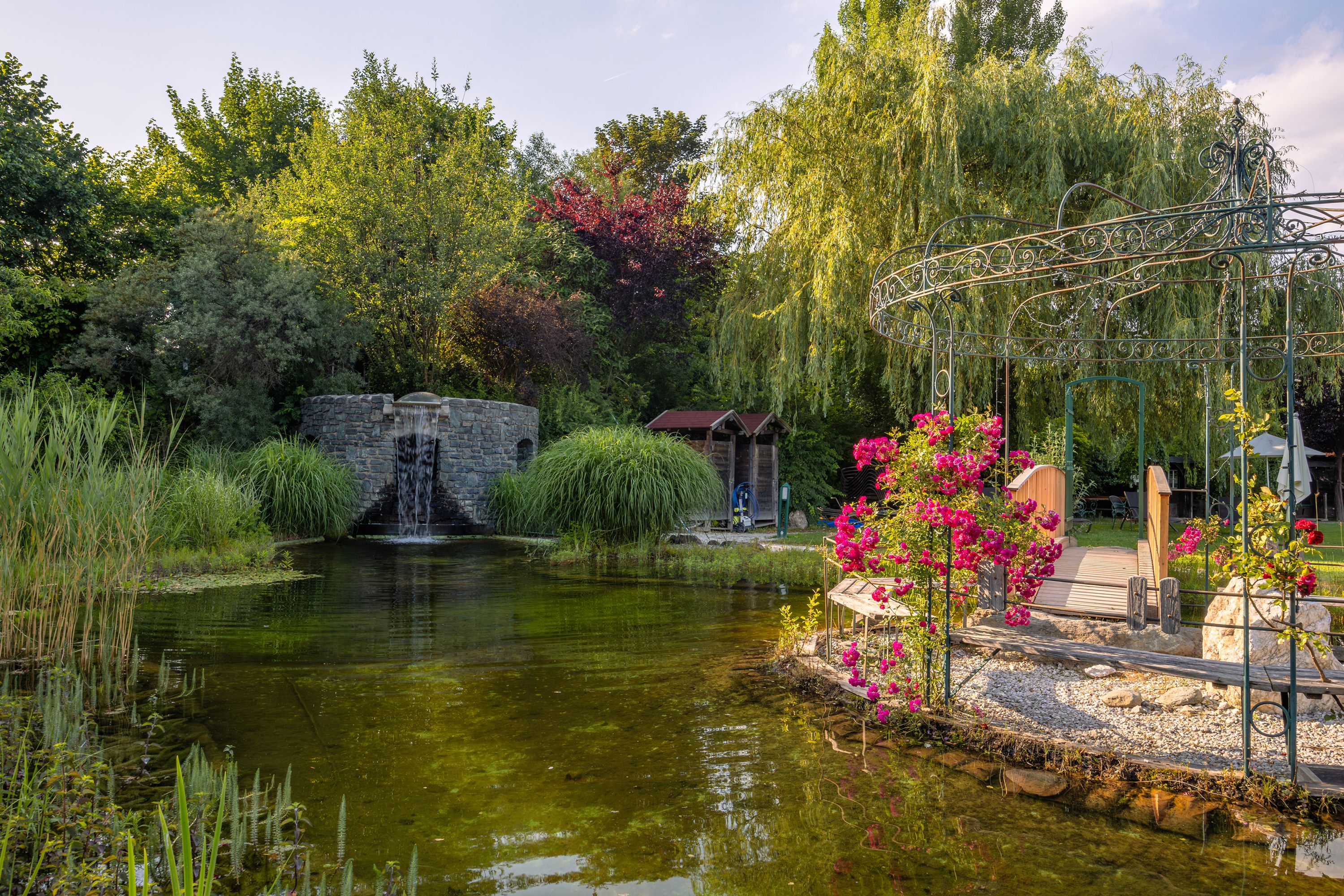 The hotel's paradise garden lives up to its name. The chirping of the birds and the splashing of the natural bathing pond are truly paradisiacal. Peter Pichler can often be found there, picking fresh herbs for the kitchen and combining them with regional products to create all kinds of delicacies in the gourmet restaurant Gaumenkitzel under the motto "Cook the Gart'l".