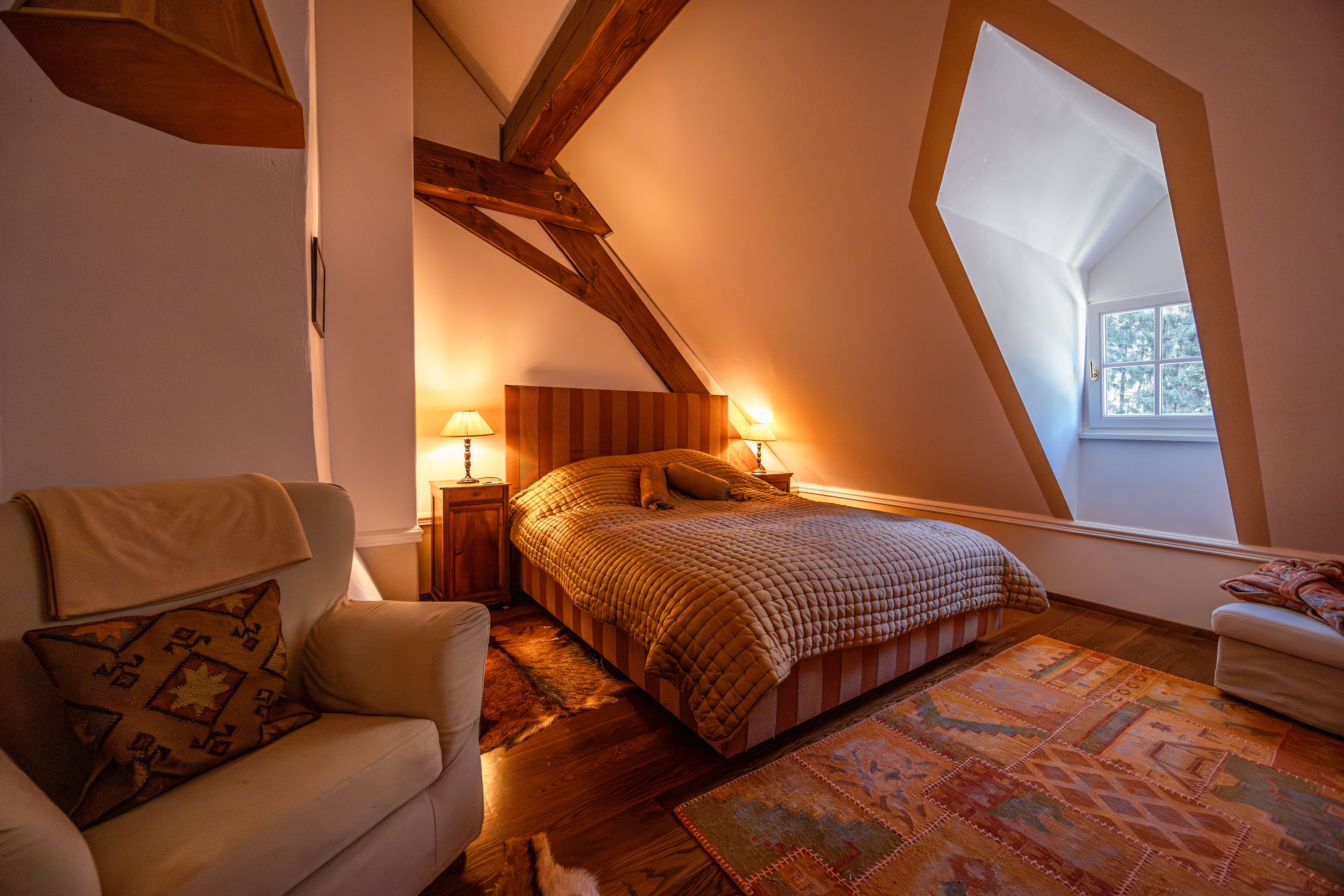 The landlady has transformed the centuries-old forester's lodge into a luxurious hideaway with a great deal of love and flair. Here you can not only stay in extremely tasteful and stylish accommodation. Here you can lose yourself and rediscover yourself in equal measure: rowing on the mystical moorland pond, strolling through the landscape, which has its very own magic in summer and winter, meeting the horses that live here or having a spiritual experience or two.
