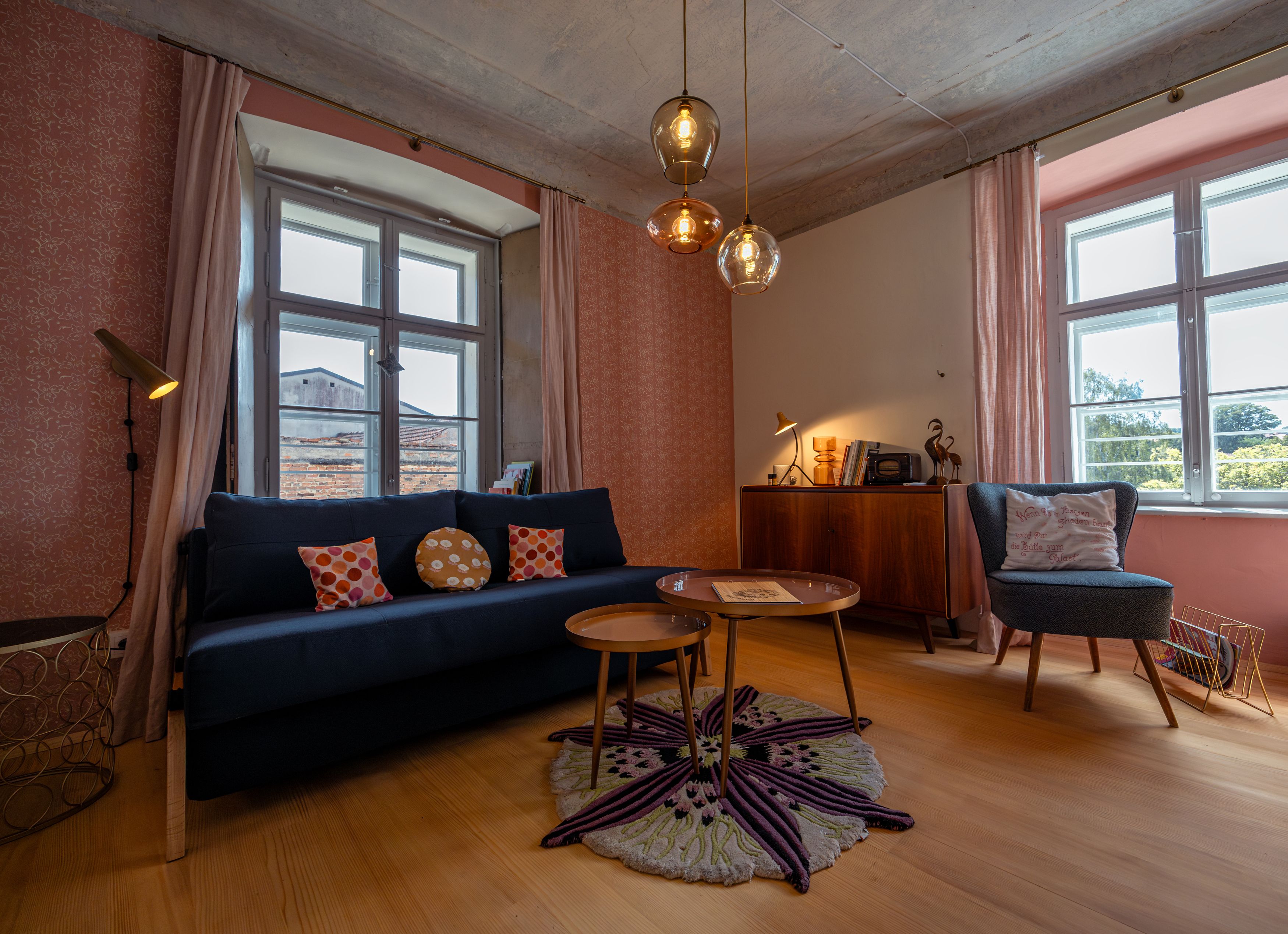 When you open the huge wooden entrance gate to the old house on the Zwettl town wall, you are greeted by an impressive view of the historic walls and the natural garden in the inner courtyard. Five vacation apartments offer space for one to seven people. Each loft has been carefully furnished, partly with original furniture and selected found objects, yet still modern with lots of natural materials. And there is a lot to discover around every corner. Voices from the past and digital gadgets make the history of the house even more tangible.