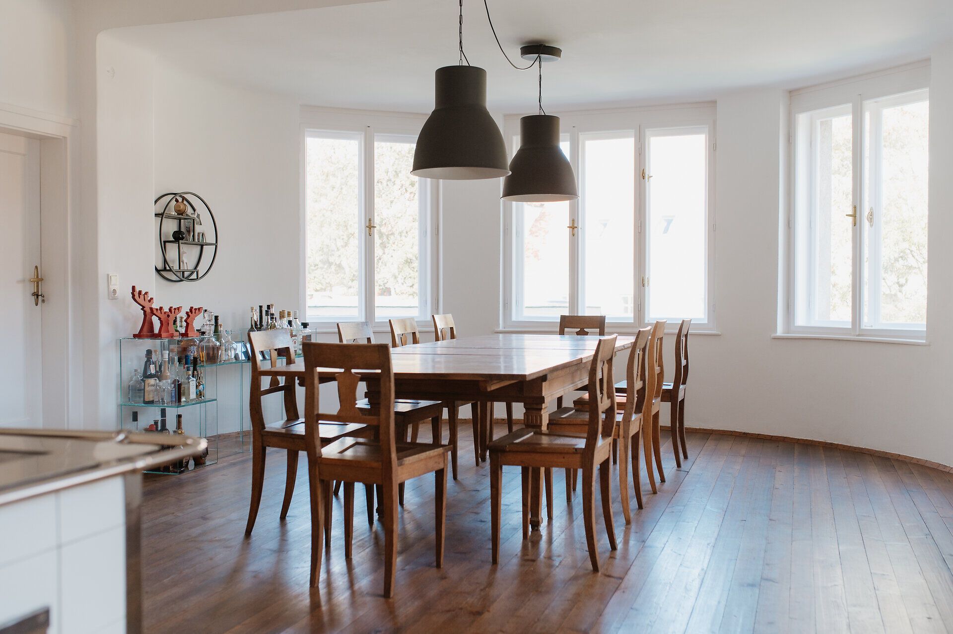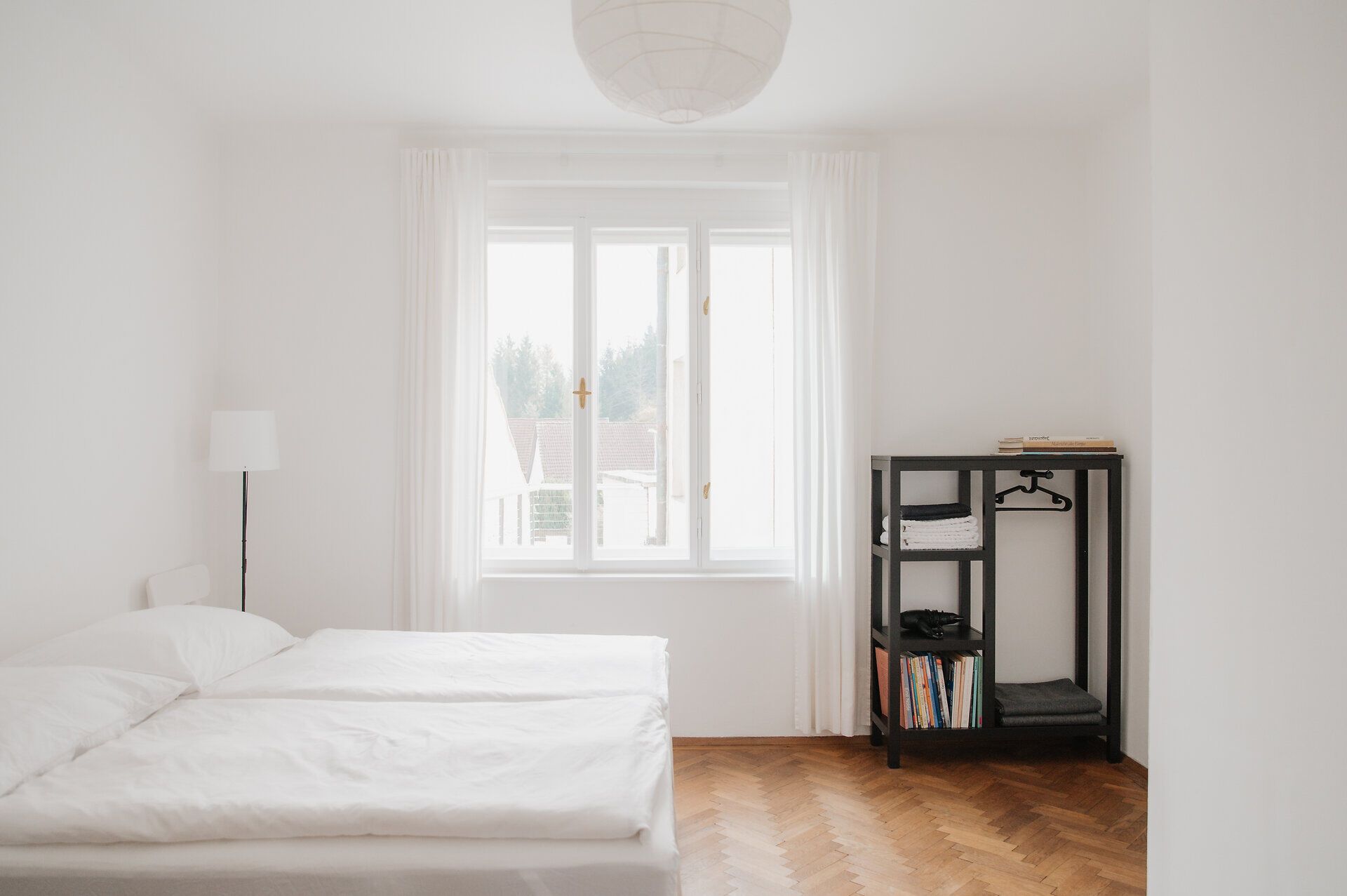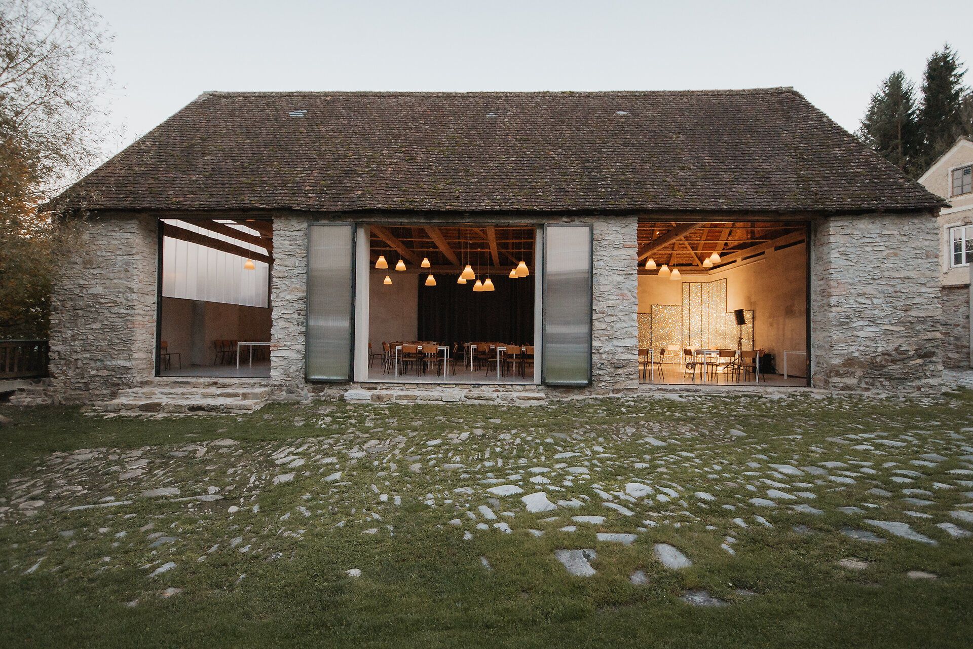 It is a remarkable building that stands in the middle of a tiny village in the deepest Waldviertel. The former factory owner's villa from the 1930s was built in the "New Objectivity" style by Erich Franz Leischner and seems to have fallen out of time and space - with its cubic lookout tower, curved façade and pointed gables. Thomas Eccli, the current owner, has carefully "polished up" his find, as he himself puts it, leaving it as clear and restrained as possible in its original state. Here you can spend your time reading and having stimulating conversations - also with the urbane and extremely likeable owner.
