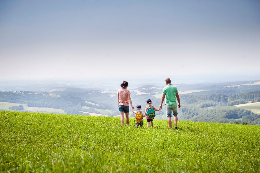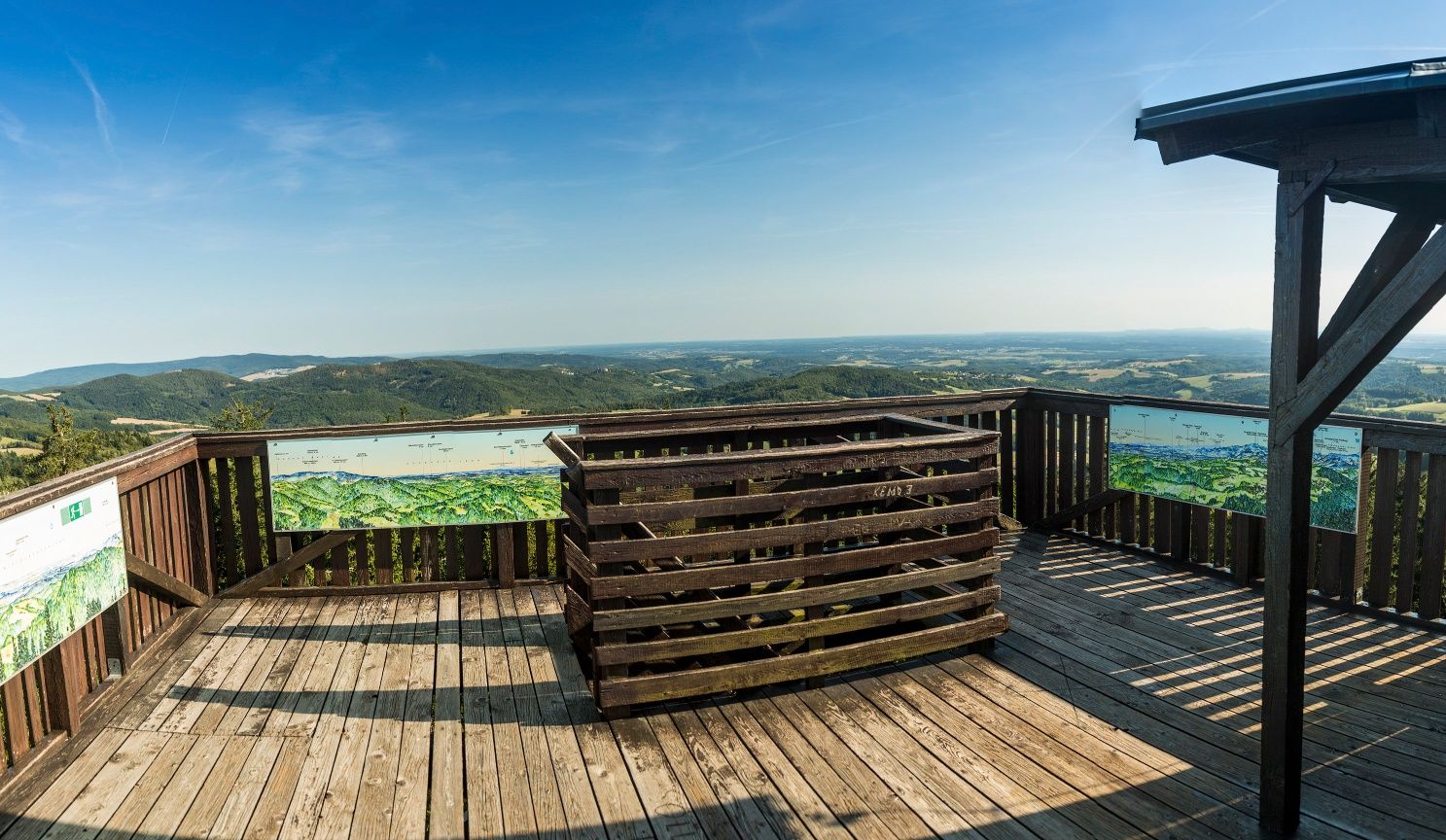 The circular trail with the Bakabu listening experience stations leads from Hochneukirchen to the Hutwischwarte and back again.