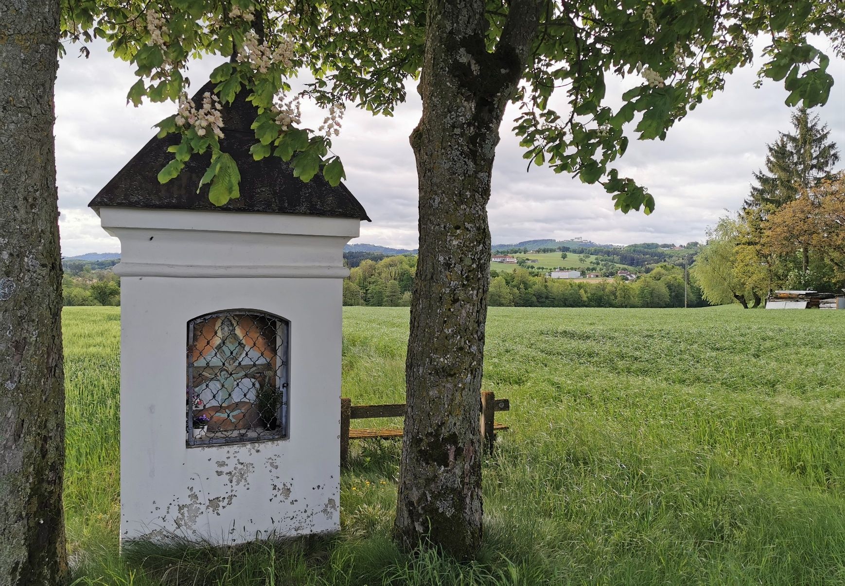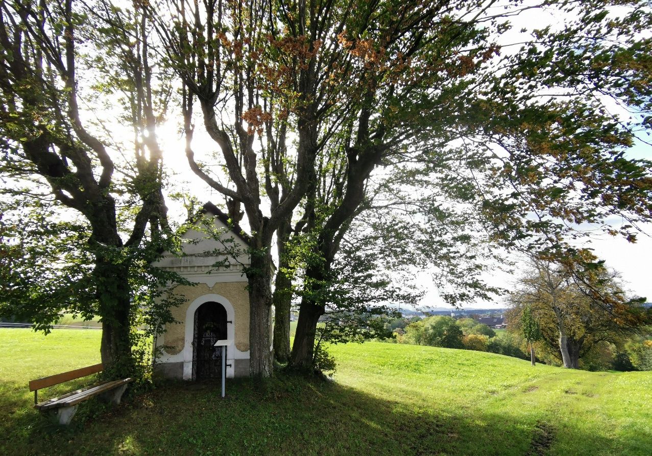 The Kromos chapel trail leads along old rows of fruit trees along lane paths and municipal roads in an easterly direction over an elevation back to Biberbach. The highlight of the trail is the wonderful views of the surrounding villages along the trail from Rotte Sand to Rotte Kicking.