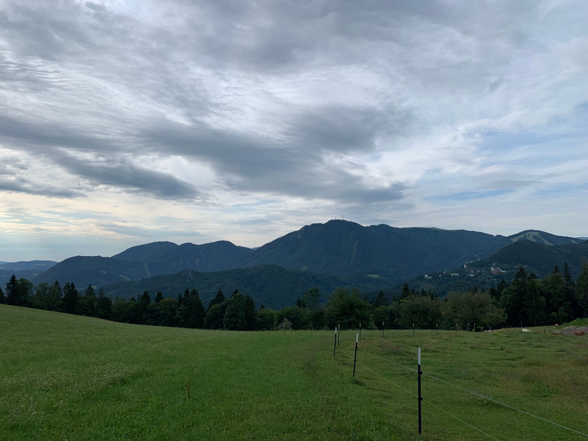 - Route description The hike begins at Breitenstein train station. From there, we follow the signs towards Speckbacher hut uphill along the road. At the first intersection, we turn left and follow the white-blue trail markers. The path initially runs on a road until a forest path branches off to the right. We follow this uphill, staying on the blue-marked route.The path passes a meadow – looking back, an impressive panorama opens up of the historic Südbahnhotel at Semmering. Afterwards, the trail goes through the forest again until it passes a pasture. Special attention and respect towards the grazing animals is required here.At the next crossroads, we follow the signs towards Speckbacher hut and now the red marking. We will pass this intersection again later on the way back. The trail continues directly to the Speckbacher hut. Along the way, there is a wonderful view of the entire Rax massif.The return route initially takes the same trail back to the already known crossroads. There we follow the signs towards Kreuzberg / Gasthaus Polleres, Althammerhof – marked red. The path continues on a wide hiking trail that leads into a gravel road on the summer plateau.At the point where a forest path branches off to the right towards Breitenstein train station, we stay on the forest road. As soon as the road is paved again, we follow the signs towards Breitenstein train station and descend via the upper Bahnstraße. There, a path branches off to the right through Lindenstraße towards the station. At the end of Lindenstraße is the municipal office, with the train station located directly above it.