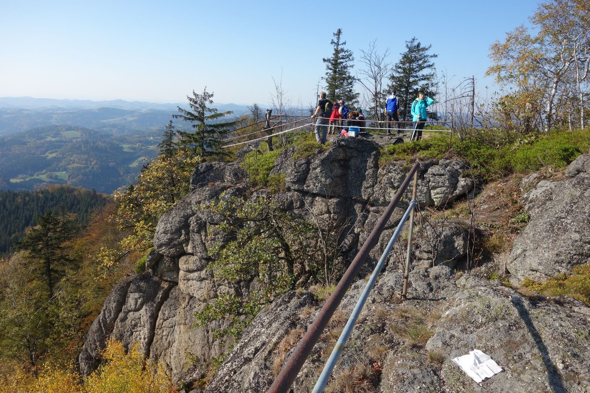 Secured vantage point with summit cross and summit book, magnificent alpine view.