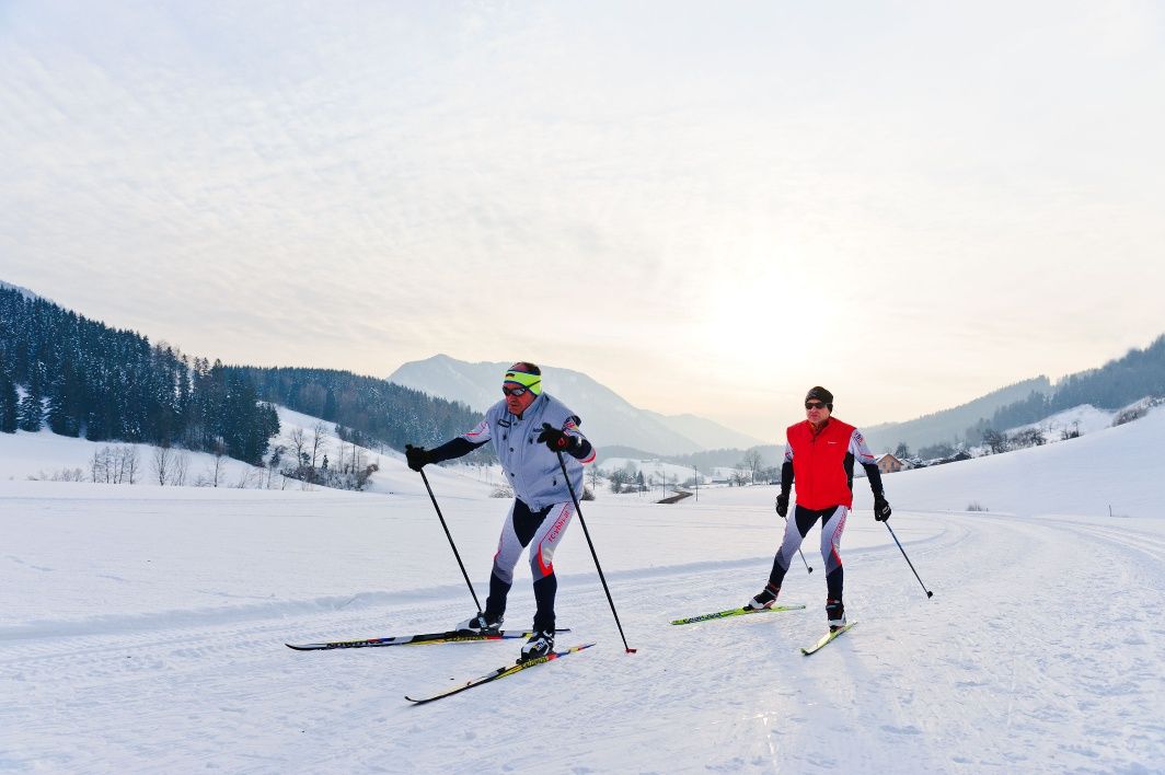 In the high valley near Ybbsitz, the sunny and cool location provides ideal cross-country skiing conditions on a largely flat trail.