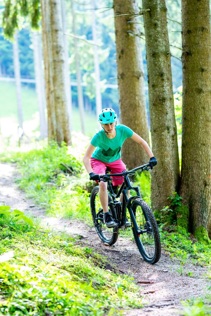 The first single trail in the middle of the realm of the wild service tree offers downhill fun for advanced mountain bikers.