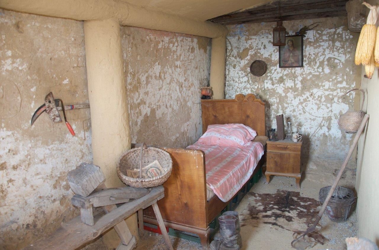 Until the First World War, the cave was used by day laborers and new arrivals. However, the simple construction, the balanced temperatures in the caves and the animal husbandry were offset by hardships such as having to fetch water from the village every day, so this form of housing was abandoned in the 20th century. The cave can still be visited today, as it was repaired in 2010 and restored to its original form. Particular attention was paid to preserving the original paintwork. Directly in front of the cave, benches and tables invite you to take a break and enjoy the wonderful view.