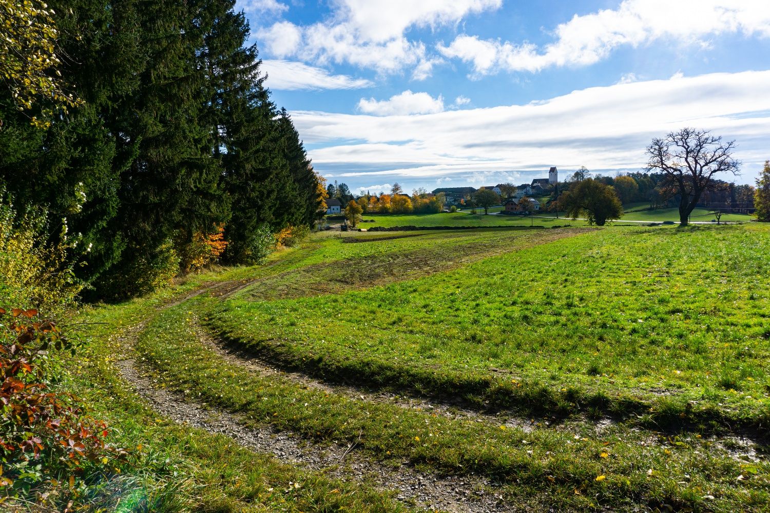 - Route description Walking path starting from Neukirchen towards Arndorf, at the house Aigner (farm holiday) you go up to the "Arndorfer Leiten" (788 m) and enjoy beautiful views of the Alpine foothills. The return route runs over meadows into the village of Grub (758 m) and on the paved farm road back to Arndorf and Neukirchen.