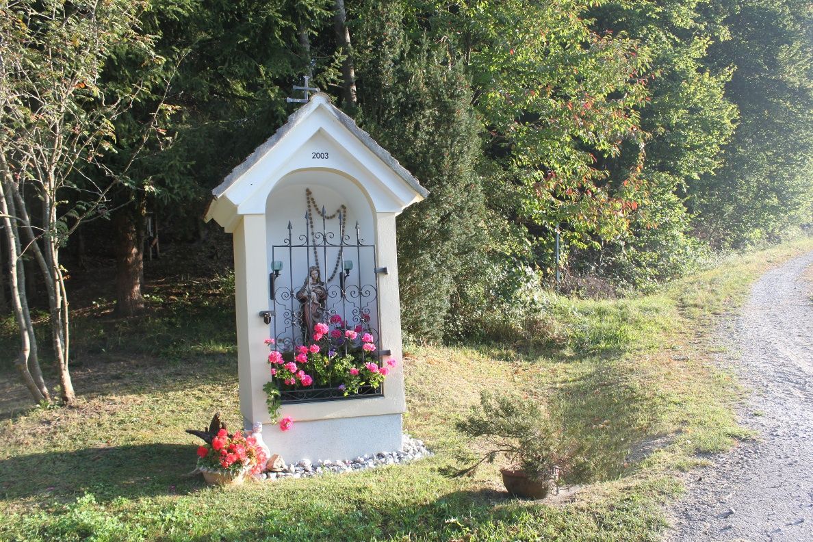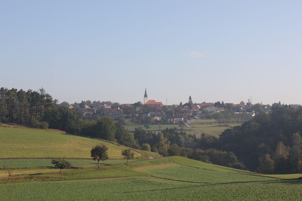 From the main square to Alt Gföhl (settlement history: from the "Dörfl zu Thal" to the town) - green power plants (wind power plants on the Satzbigl 635m and in the Ried Bitzen near Reittern) - through the "gorge" of the Garmannser Bach to the Litschgraben (erosion in the history of the earth) to the "Luckerten Stein" on the Weyberg (slippery stone and legend of the witches' sabbath on the Höllenstein) - via the "Hausberg" and the "Bayerland" back to the main square.