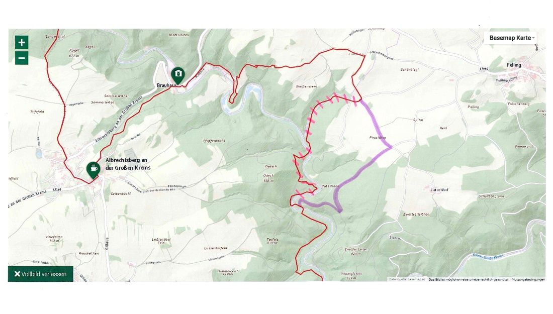 The 93-kilometre Kremstalweg trail is a hike between the plateaus and dark, cool valleys of the southern Waldviertel and offers an extensive side program for short breaks in addition to the hiking route. The Gudenus Cave in Albrechtsberg, the herb garden and the Wachtstein in Bad Traunstein are popular places to visit.