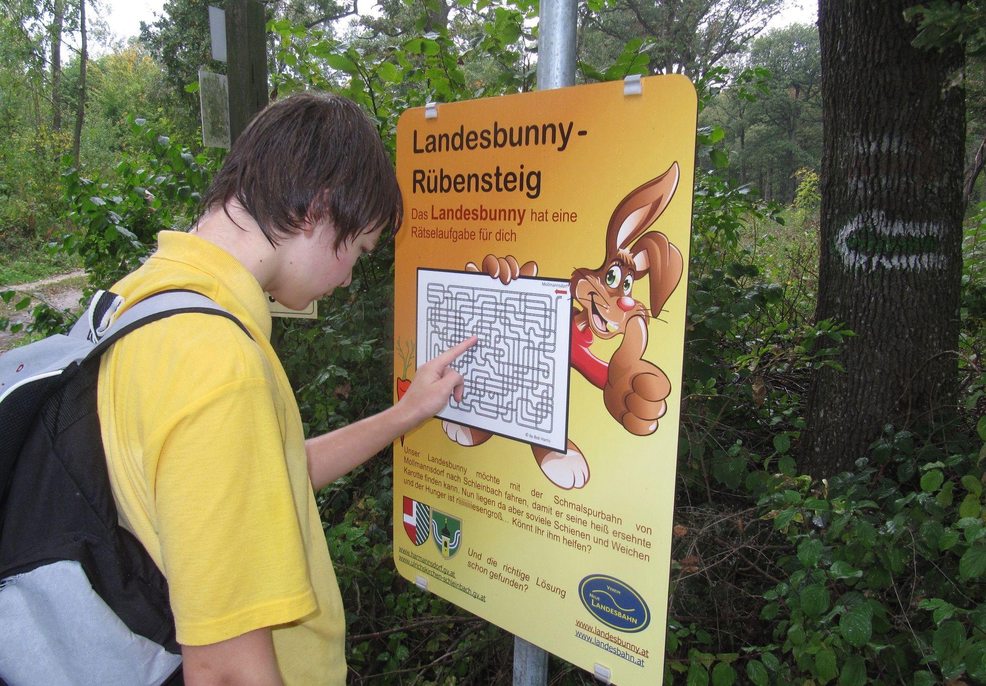 A total of 8 "stamps" are hidden along the trail. Anyone who stamps the "Landesbunny-Rübensteig" folder with them can pick up a little surprise at the inn near Schleinbach station.