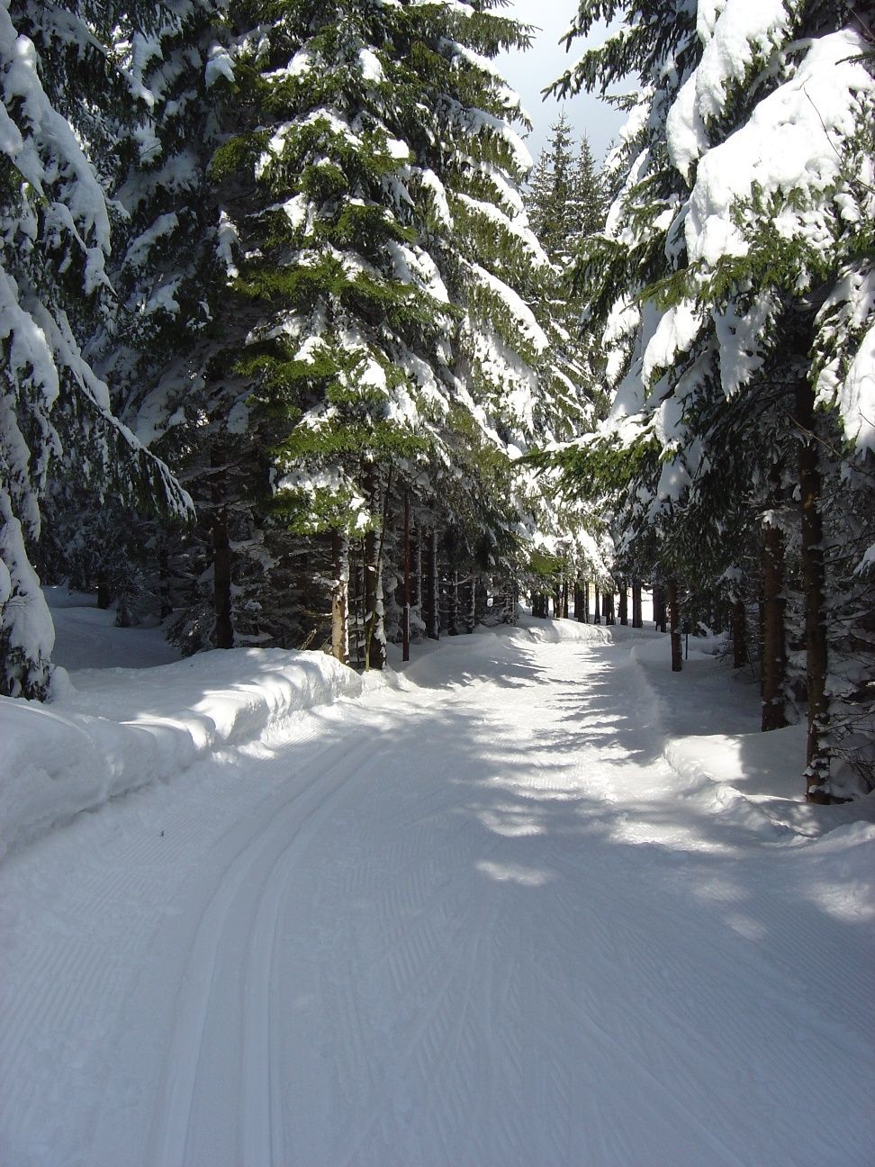 Difficulty red (medium), length 7 km, difference in altitude 130 m, total ascent 165 m Snow guarantee: 3 flakes 200 m after the start, turn left and cross the local road at the ski school and ski rental shop. The first 3 km are downhill runs, the rest is uphill and therefore challenging