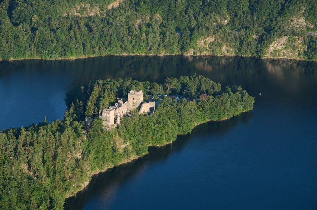 - Route description You walk past the bathing pond and after 300 meters turn right onto a field path. You reach the paved road and turn left towards Reichhalms and continue south to the Dobra ruin – with a top-class view from the keep over the Dobra reservoir! The keep of the Dobra ruin is open during the summer season. Your next attraction is the Devil's Church shortly before Schloss Wetzlas. From the castle you march via Schmerbach to Frauenluckn and further up to the Schwarzenöd ruin. After a view into the Kamp valley, you walk along Schmerbach, past the Schwarzenberg ruin, into the village of Schmerbach. From there the well-signposted path leads you back over fields and meadows to the starting point.
