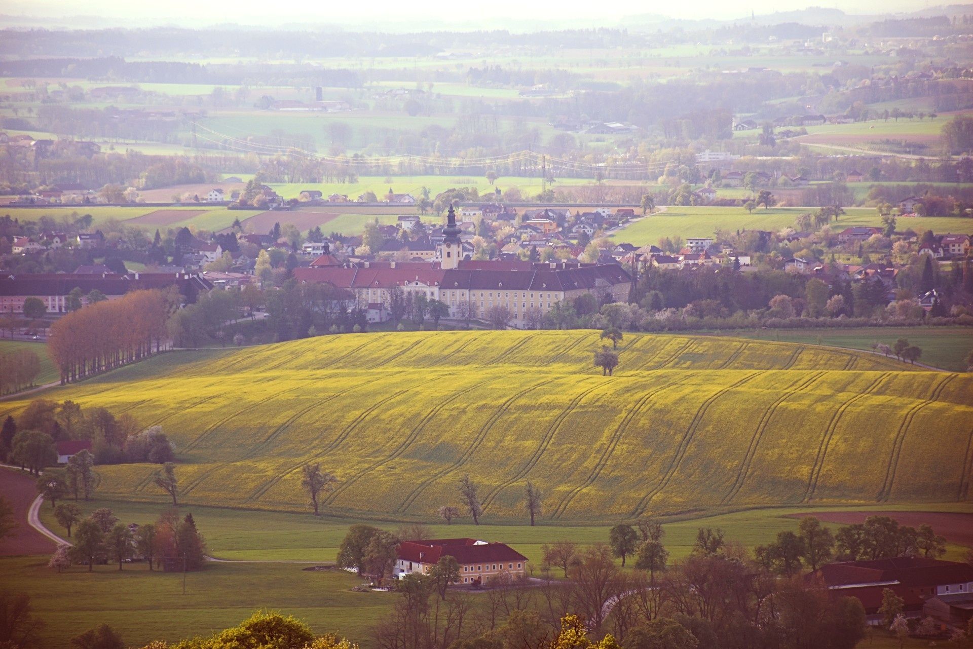 Once at the top, a breathtaking panoramic view of the Mostviertel Alpine foothills awaits. There is a panorama plate on the Blümelsberg hill, which can be used to identify prominent mountains and places. On clear days, the view to the north extends as far as the Mühlviertel and Waldviertel, and to the south as far as the Sonntagberg, Hochkar, Ötscher and beyond.