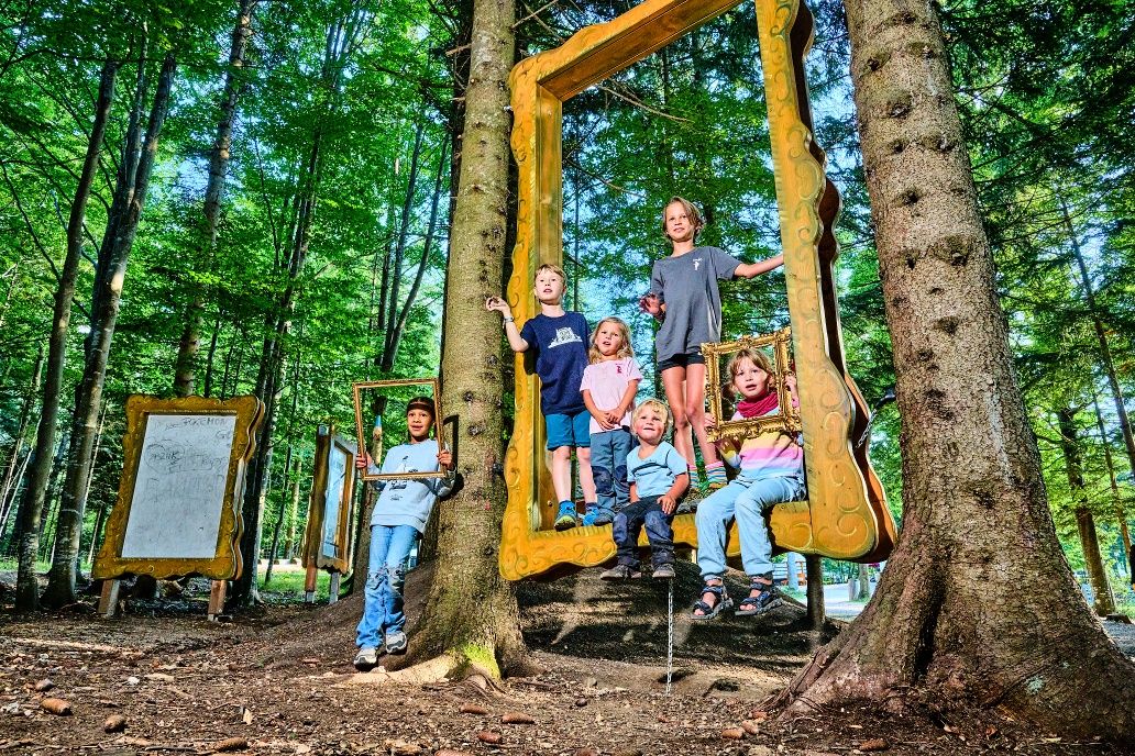 They read in larger-than-life books, draw with real charcoal on high picture walls and discover the tracks of animals. A treasure map leads them into the labyrinth of animal tracks, to the magical dragon place, up the high bat mountain and into the deep marble caves. Butterfly banks, giant eggs and forest nests let you slip into animal roles.