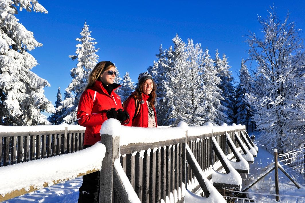 The Naturpark Hohe Wand with its many hiking and walking paths is the ideal excursion destination for the whole family. The Schneebergblick loop offers a pleasant circular route leading to the 18m high lookout tower, with views of Schneeberg, Dürre Wand, Unterberg, and with some luck even as far as the Neusiedler See. Animal encounters await at the enclosure where llamas and mouflons welcome petting. At the starting point, Naturparkstüberl, you can learn about the history of life on the Hohe Wand in the alpine and homeland museum and enjoy some refreshments. And of course, don’t forget the play and fun hill, where children can live like a marmot, climb like a goat, and let off steam. In snowy conditions, the play and fun hill becomes a tobogganing hill. The Schneebergblick circular route is cleared in winter.