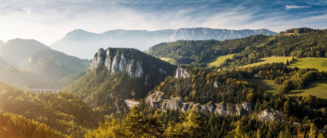 The stage of the Bahnwanderweg leads from Semmering past the most impressive viaducts, viewpoints, and buildings of the UNESCO World Heritage Site to Payerbach Train Station.