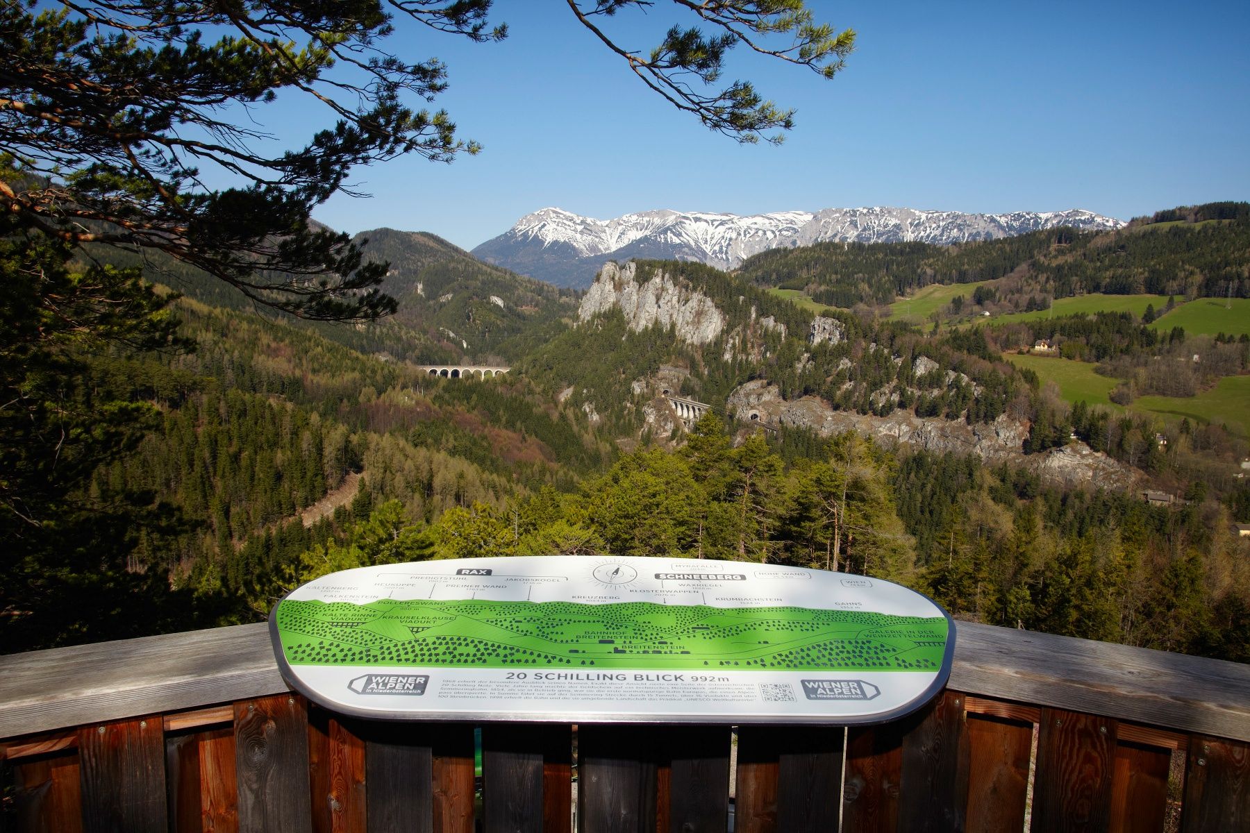 Like the large Alpine Arc, the diverse landscapes of the Vienna Alps align one after another. A "small Alpine Arc" with magnificent views fans out: the gentle hills of the Bucklige Welt, the alpine pasture landscape at the Wechsel – also called Schwaigen – the Semmering – world-famous for the Semmering Railway, which bears the UNESCO World Heritage title – the alpine 2000-meter peaks Schneeberg and Rax, as well as the gentle elevations of the Gutenstein Alps.