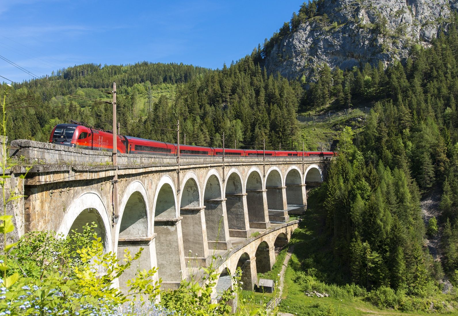 At first, there was a path over the Semmering Pass - evidence for this exists since the Middle Ages. Then, in the early 18th century, Emperor Karl VI ordered a road to be built with up to 17 percent gradient, over which horses labored with their loads. Finally, in 1841, the contract was given to build a railway line from Vienna to Trieste to meet the transport needs of the beginning industrialization. In 1844, the "only" gap between Gloggnitz and Mürzzuschlag over the Semmering had to be closed. Under the direction of Carl Ritter von Ghega, 20,000 workers built Europe's first standard-gauge mountain railway, which has experienced few changes to this day. On the 41 km stretch, trains run over 16 viaducts, 100 bridges, and through 15 tunnels. Since 1998, this "outstanding technical solution to a major physical problem in the construction of early railways" has been a UNESCO World Heritage Site.