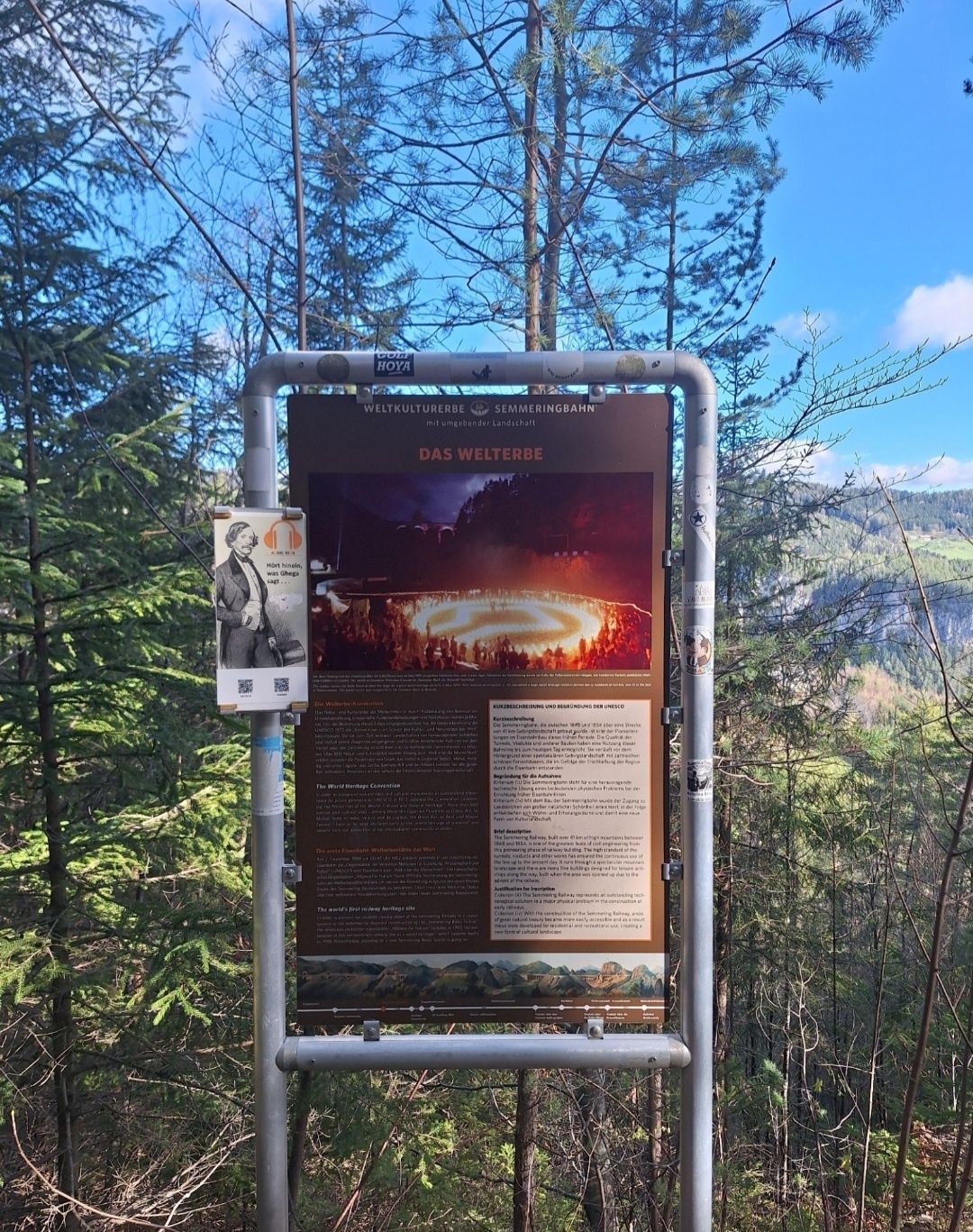 The hike starts at Semmering train station and leads along the UNESCO World Heritage Semmering Railway. Information boards and beautiful viewpoints accompany the entire route. From Semmering train station, the path follows the railway embankment to Wolfsbergkogel train station. At the Doppelreiter viewing platform, you can enjoy panoramic views of the impressive viaducts and tunnels with Rax and Schneeberg mountains in the background. From here, you can watch trains on their journey over the most impressive structure of the Ghega Railway, the "Kalte Rinne." A must is to enjoy the "20-Schilling View" (named after the motifs of the 20-Schilling banknote). Then continue to the Fleischmann Bridge, along the "Red Mountain" beside the railway line, from the "Kalte Rinne" the path leads on the upper Adlitzgraben street, past the Iron Cross, to Breitenstein. Return to the starting point or continue to Payerbach and Gloggnitz comfortably by Semmering Railway or on hiking paths alongside the railway.