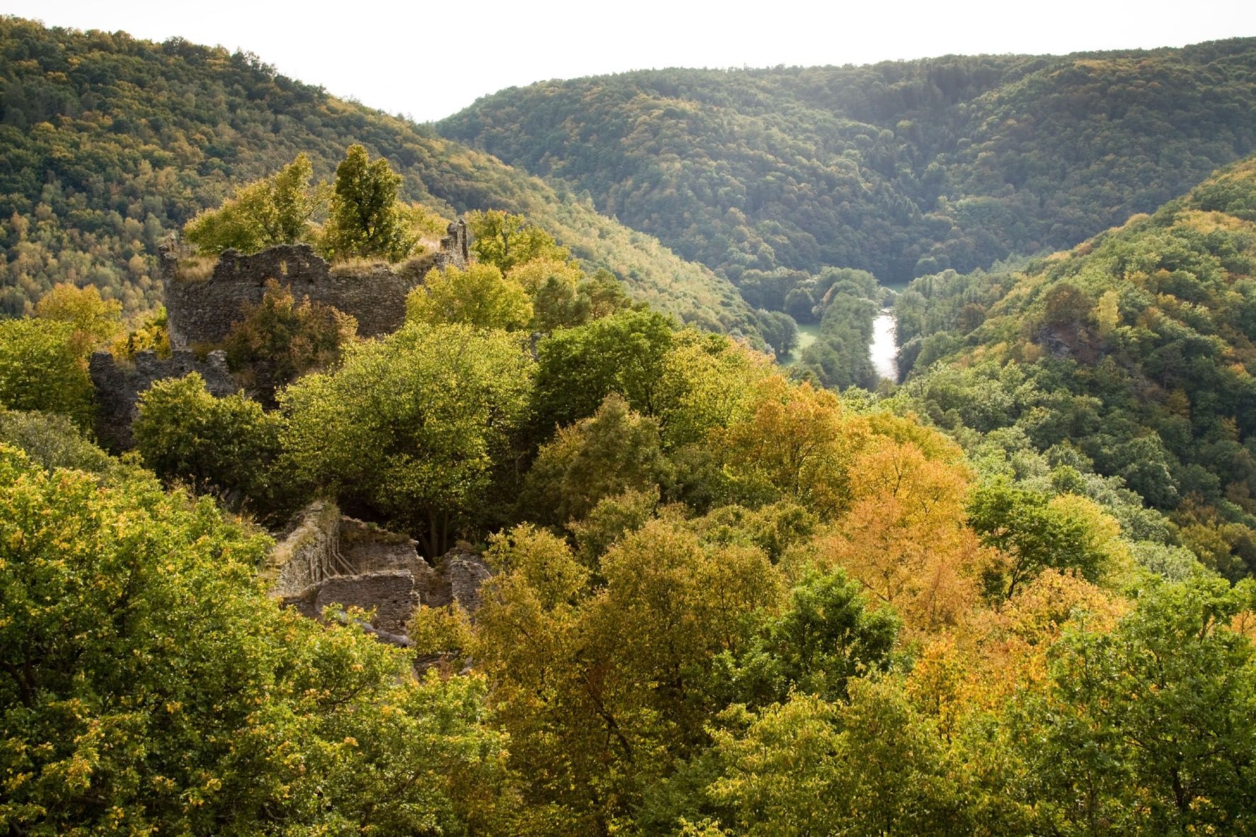 This hike leads through old forests and past fields to the village of Lukov. An old hollow path leads to the Neuhäusl ruins, a former hunting lodge. From the highest point of the ruins, you can see the Thaya three times.