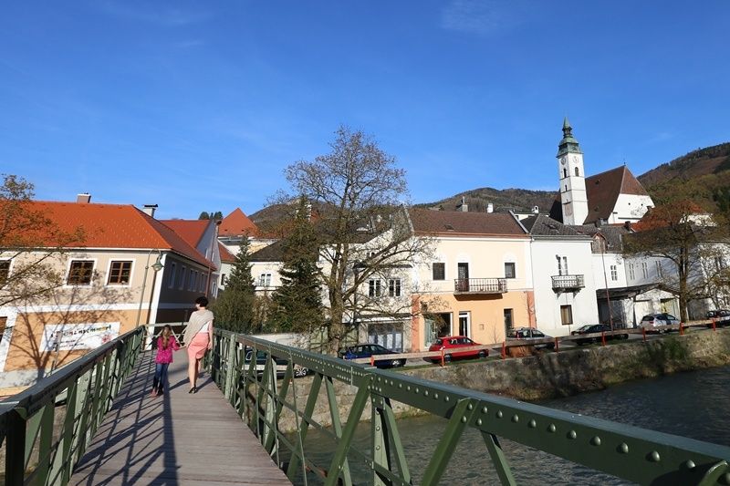 - Route description From the left bank of the Erlauf, you walk over the Sandsteg and then up to the oldest part of the town: to the town hall square with church, castle, and town hall. The path continues to the Flecknertor and along the former course of the city wall — where the moat used to be — to the Powder Tower. Over the particularly beautiful main street, you then return to the town pier with seating stands right by the water.