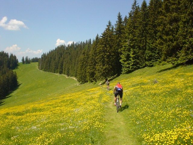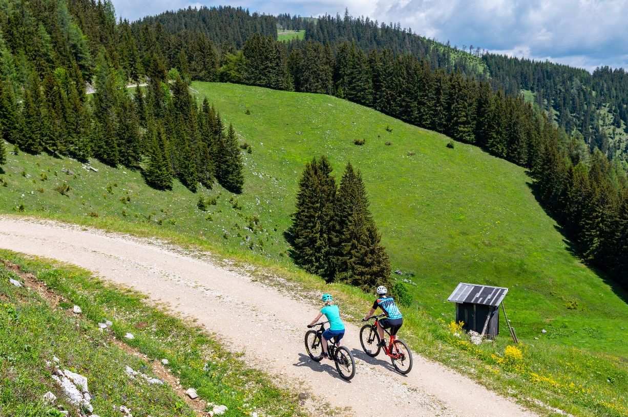 The Sonnbrand-Almtour offers a top-class MTB experience! A leisurely start on asphalt, a long and sometimes steep gravel climb to the highest point with a fantastic 360° panoramic view of the Gesäuse and the Ybbstal Alps, past two rustic mountain huts with the best regional products for refreshments, between the cows on a narrow single trail and finally a rapid downhill with sections in the bike park.