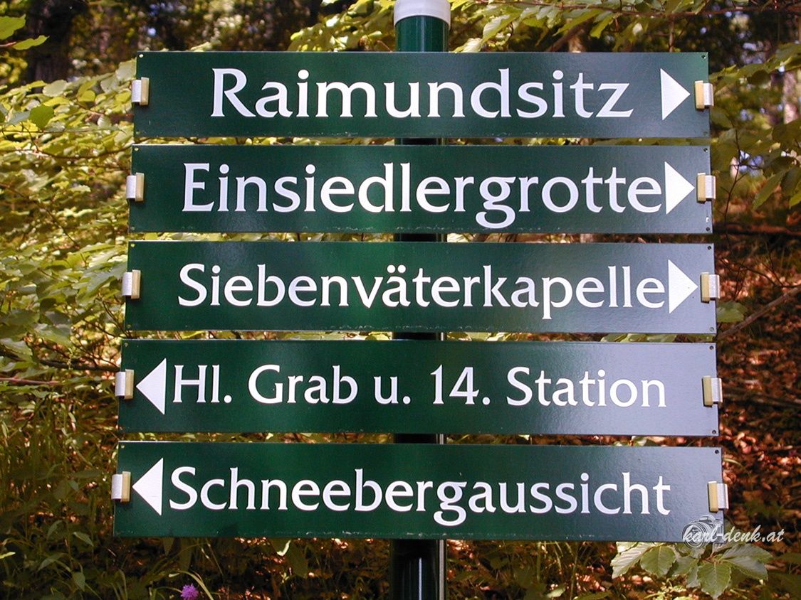 - Route description From the Mariahilfberg parking lot, we walk to the pilgrimage church. Passing the church on the left, we follow the path along the masonry Stations of the Cross to the 14th Station. To circle the Residenzberg, we turn left at the signposts on the return path, heading to the Raimundsitz, past the Seven Fathers Chapel and the Hermit's Grotto.