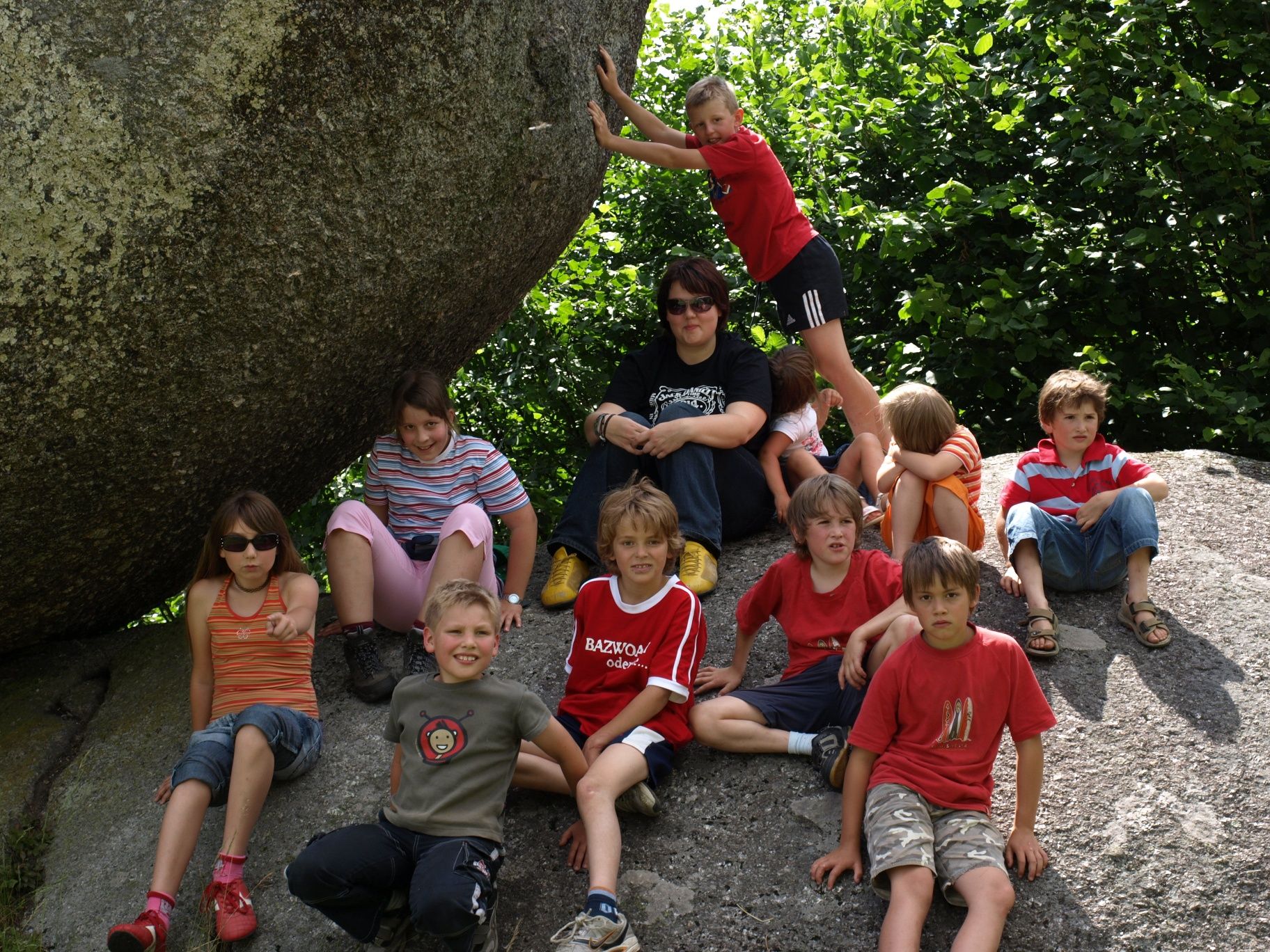 - Route description As its name suggests, this path shows diverse and extremely impressive granite blocks from the structure of the Wachtstein. The themed circular route leads to the most fascinating rock formations of Bad Traunstein. The Franzosenstein tells the history of Traunstein. You start at the car park at the elementary school and follow the signs over the Opferstein to the Wachtstein (viewpoint at 958 m). Then continue through the Wachtstein area towards the village edge. Here you walk along the settlement to the crossroads and further towards the "Stone Bakery" (or you follow the path to the left here, which leads back to Bad Traunstein without an adventure detour). This path takes you over the Franzosenstein and the Josef Elter exhibition center back to the parish church.