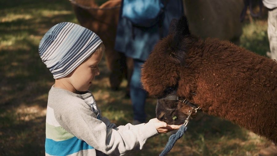 - Editor’s tip Alpaca – warning, highly addictive! There are 30 alpacas living on the Altiplano. You pass the Manada de Sana alpaca farm (that is Spanish and means “healthy herd”) here. It gets very cuddly! Once you’ve touched an alpaca, you’ll never forget that fluffy feeling on your skin.A visit to the animal protection project BÄRENWALD Arbesbach can be easily combined with this short hike as a day trip. Or you can visit one of the power places at www.kraftarena.at. Groß Gerungs is the terminus station of the www.waldviertelbahn.at, so you can also combine the Teddybärentrail with a narrow-gauge train ride.If you want to stop at Gasthof Einfalt, make sure it is open. Guided tours at the alpaca farm are by telephone appointment, available daily. When you start, take the Teddybärentrail folder including map with you. You can find it, as well as other Bärentrail materials, right at the starting sign at the parking lot. Download available at: www.baerentrail.at/teddybaerentrails.