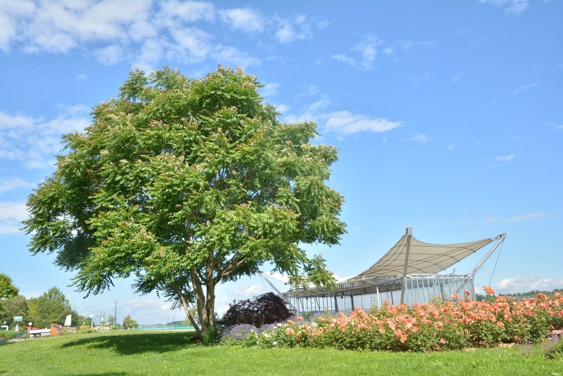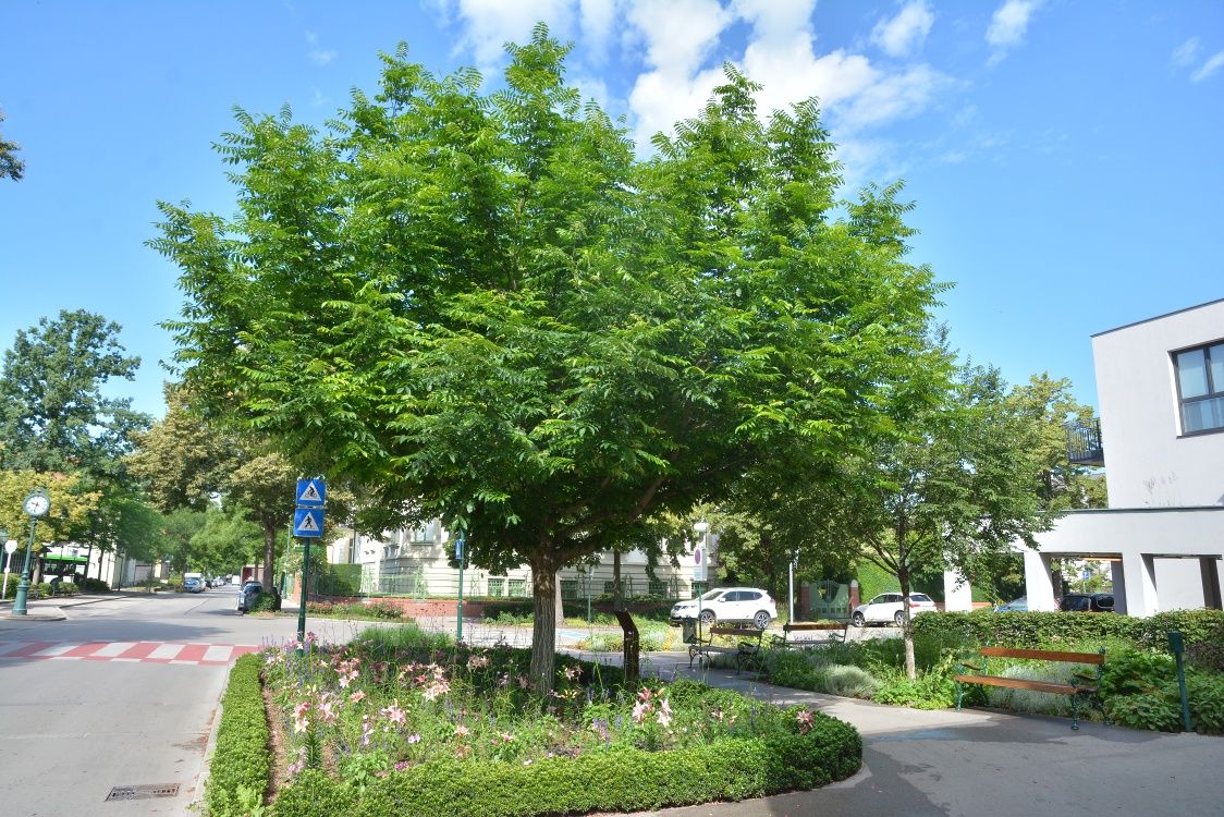 Danube banks at the Danube Fountain - Tree of God: The tree of God is a deciduous tree species and was originally native to China and Vietnam. It is now found in all areas of the world with a temperate climate.