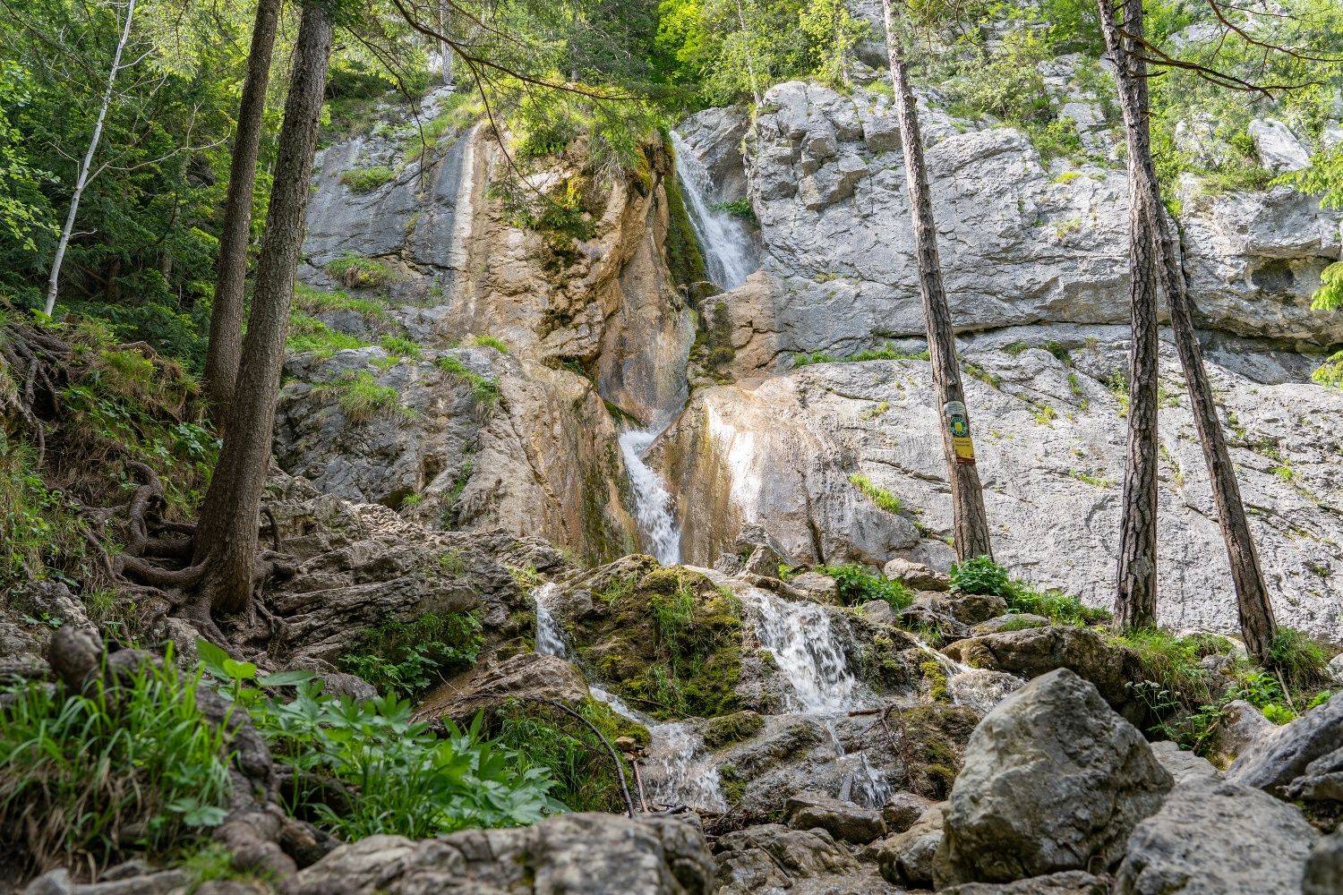 A wonderful hike in the Puchberg valley basin, past the waterfall, Losenheim Castle, through the meadows and back to the starting point via the Hubertus Chapel.