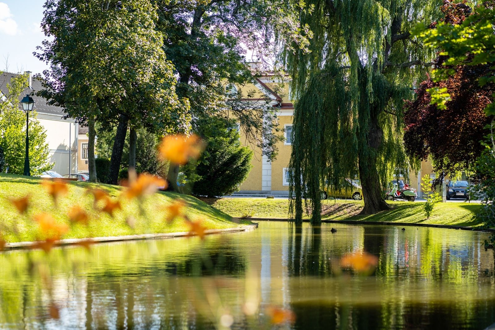 The starting point for this idyllic walk is the village center of Lichtenwörth. From Gasthaus Halbwax, walk along the main road past Gasthaus Prandl to the school, where you turn right towards Villateich and the Nadelburg castle, including the museum and church. You also pass the Jakobikirche church and the Adlertor gate. The route then continues along field and forest paths towards Lichtenwörth, where you turn around on a bridge and then walk along the Leitha towards Ulme - a small snack stand in the middle of the forest. From there, idyllic paths lead back to the town center.