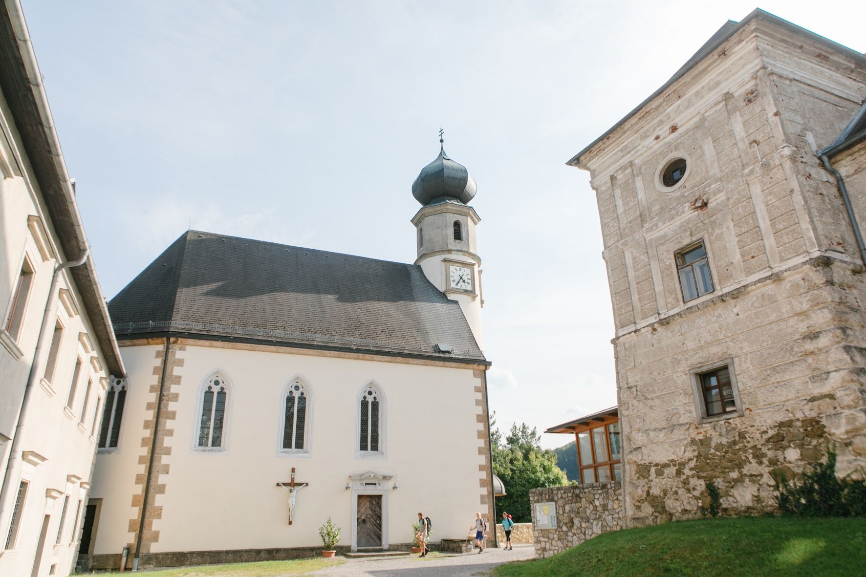 The trail starts in Perchtoldsdorf at the parish church and leads via the Pfarrer-Karl-Seemann-Promenade into the Föhrenberge Nature Park to the Parapluieberg (Franz Ferdinand-Schutzhaus, 01:15 h). From there, the route continues through sparse deciduous forests via the Kammersteinerhütte, Kugelwiese and Seewiese - past Wildegg Castle - to Sittendorf (03:00 h). Via Meierei Füllenberg you come to the highway underpass, behind which the Heiligenkreuz cemetery is already located. From the cemetery, you soon reach the baroque Calvary of Heiligenkreuz Abbey, via which you can reach the abbey in a few minutes (01:30 h). From the monastery you finally reach Mayerling (01:15 h). From Mayerling, asphalted paths and country lanes lead to Maria Raisenmarkt. The route continues through the forest to Holzschlag (02:00 h) and via the Peilsteinhaus and Neuhaus Castle to Weißenbach an der Triesting (02:30 h). At the village center, take the turn-off to Furth and walk along the main road for just over a kilometer to Gh Bruthenne.
