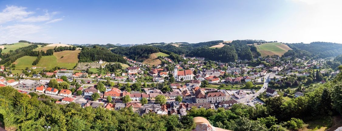 - Route description The Regional Route C starts at the Krumbach municipal office, near the bus stop "Krumbach Markt". For those not yet ready to start, a visit to the Krumbach Museum Village is recommended.The first meters of the route lead slightly downhill along Marktstraße. Before the bridge over Pfarrbach, turn left onto Tiefenbachstraße towards Katzentürl and Lindenhof. The road rises uphill and soon leads in a right curve onto the Lindenhof farm road towards Bad Schönau. The view sweeps to Krumbach Castle, and the Rosary Chapel is reached. Here, turn left onto the red-marked forest path, which is also signposted as the Marienweg to Mariazell. On narrow paths, the route passes the Place of Silence to the Strobl farm. The route takes a right curve and crosses the Tiefenbach on a wooden footbridge. At the following crossroads, the path leads right along a track with a middle strip, which is followed for some time.After house no. 133 and shortly after a bridge, a turnoff at a rest area leads left into a driveway. The path leads left past the house and goes uphill in a right curve along hiking trail D9 and the Marienweg. After a few minutes, after a left bend, the path immediately turns right and ascends steeply. Two minutes later, the path crosses a forest road, and shortly thereafter the forest path merges into another forest road, where the route turns right again.Less than 100 meters after leaving the forest, there is a right turn onto a field path, with the Bacherbauer farm in sight. The path leads left past the farm, slightly uphill on a farm road which finally meets an asphalt road. Here, turn right to follow the Panorama Road for the next hour towards Kirchschlag. Many noble families once regarded Kirchschlag Castle as their residence; today, the castle within the Passion Play town is freely accessible.In Kirchschlag, the path leads by the Passion Play House over a bridge crossing the Zöbernbach to Passion Play Street. Directly after the church and before the Zöbernbach, turn left onto the footpath. Shortly after, the way leads right at the rose garden into Kirchengasse and over two bridges onwards to the main square. There, turn left and shortly after, after Hotel Post / Hönigwirt, turn right again towards the information board for the Wiener Alpenbogen and the Kaiser Franz Josef Monument. The Regional Route C ends here.It is possible to follow the Wiener Alpenbogen on foot to Bad Schönau and subsequently walk the Regional Route D back to Krumbach. A visit to Kirchschlag Castle is also worthwhile. Besides overnight stays in Kirchschlag, there is also the possibility to return to Krumbach by regular bus. The bus stop is located directly on the main street next to Hotel Post.
