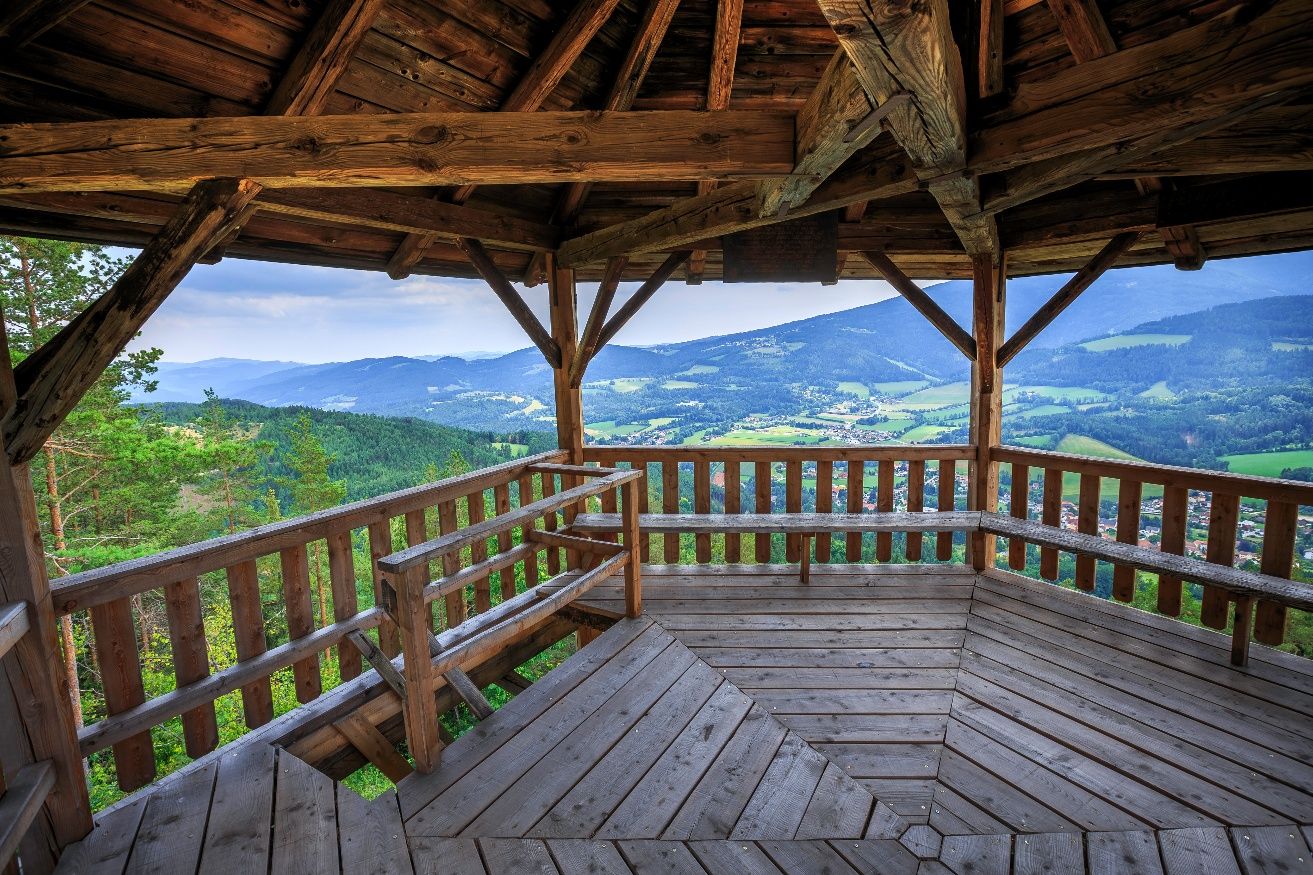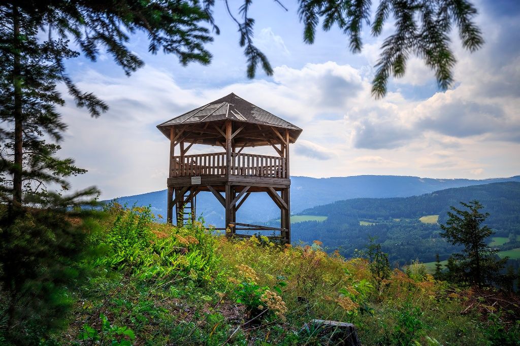 - Route description We begin the hike on Regional Route I at the municipal office Kirchberg am Wechsel. The first meters lead us uphill past the parish church St. Jakob and shortly afterwards onto a hiking trail, which takes us approximately 300 meters in altitude up to the Calvary Hill and further to the Kernstock Watchtower (marked in red). A detour to the vertigo-free and panoramic watchtower is worthwhile. We have not yet reached the highest point of the route, as we hike partly scenic and partly shaded forest and trail paths uphill on the western slope of the Eselberg and continue northwards on the agricultural road to the Karlshöhe. However, we will find out after a few more kilometers that this is still not the highest point of the route.At the Karlshöhe, we turn left and follow the agricultural road to Rams (also Nordalpenweg, marked in red). Behind the Ramswirt, we turn left at the parking lot and walk the road slightly uphill. After the right curve, we turn left after a few minutes and then immediately turn right onto the trail along the ridge. We come across a road again and follow it northwest to Raach am Hochgebirge. In the village, we keep left and follow the road to Schlagl. We cross the country road, go through the small settlement Schlagl, and continue uphill to the Schanz Chapel, a small saddle and the highest point of Regional Route I. We hike steeply downwards through the forest towards Göstritz, but leave the village and the construction site of the Semmering Base Tunnel on the right and continue southwards into the Göstritzbach valley (partly marked in green), turn back after a few minutes to the other side of the valley, and ascend gently on the Parapluie Trail. The hiking trail leads us closer to the country road and eventually to the pilgrimage church Maria Schutz. The hike on Regional Route I ends here. You have the option to spend the night at the Kirchenwirt next door or to hike on Regional Route M to Payerbach or to Sonnwendstein. Moreover, you can take the bus from Maria Schutz to Semmering or to the Payerbach train station. At all points, you will rejoin the trail of the Wiener Alpenbogen.
